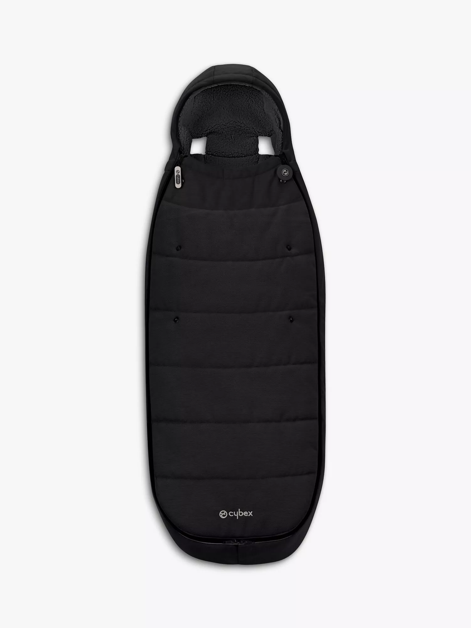 - Several Snap Buttons - Fold down the front of the Footmuff to make the opening bigger, for freedom of movement or to make sure that the face of a small baby is not covered. Snap buttons give you the choice of several opening sizes.
