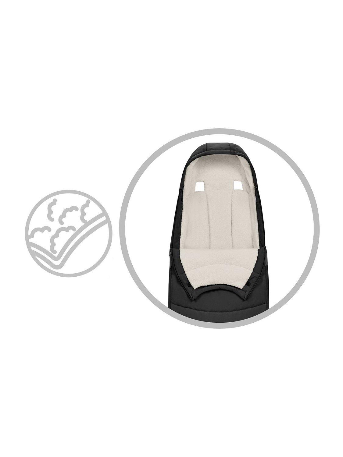 Its' water-resistant fabrics protect perfectly from cold weather, wind and light rain. The colours and materials match perfectly with the stunning design of your Cybex Platinum pushchair including the Coya, Mios, Priam and ePriam (sold separately).
