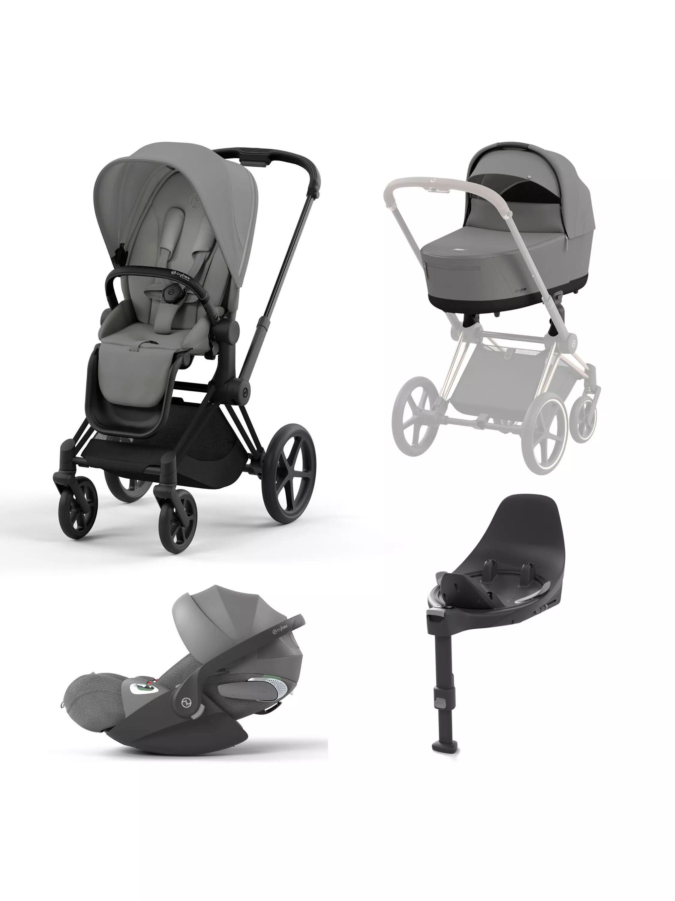CybexPriam Pushchair, Carrycot & Cloud T PLUS i-Size Car Seat with Base T Bundle, Matt Black/ Mirage Grey