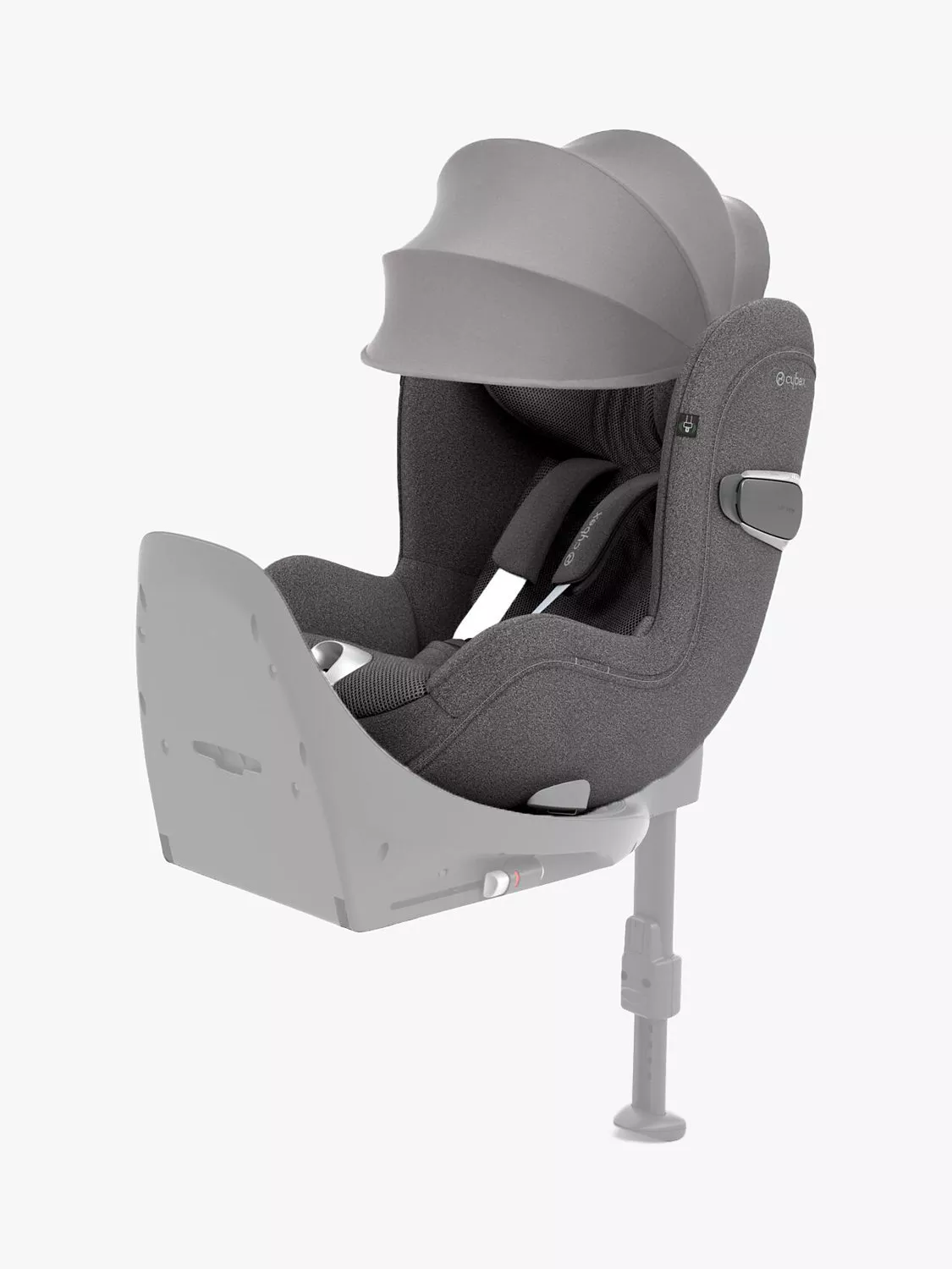 - Integrated UPF50+ fabric sun canopy – plus fabric only - The brand new integrated sun canopy on the Sirona T Plus is made of UPF50+ fabric**** and offers your child excellent sun protection in the car. As your child grows the sun canopy moves seamlessly with the headrest, and on dull days can be simply folded back and tucked away. For warmer days, the sun canopy is equipped with mesh inserts, which guarantee ideal breathability and ventilation.