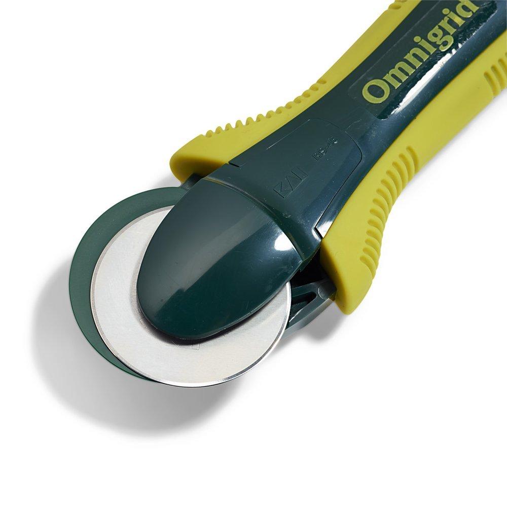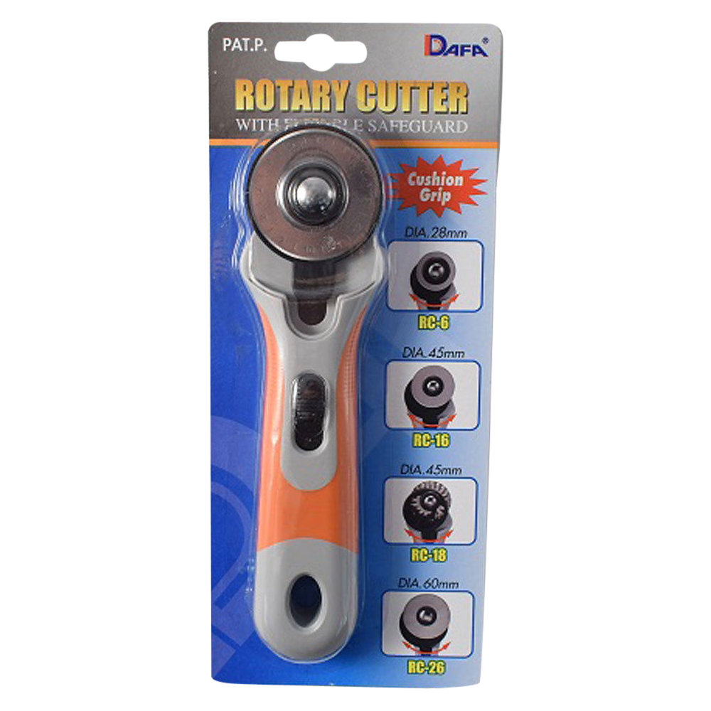 This practical rotary cutter from Dafa is built with a soft grip cushioned design for comfort and a flexible safeguard for protection. The cutter is great for both left and right handed use.