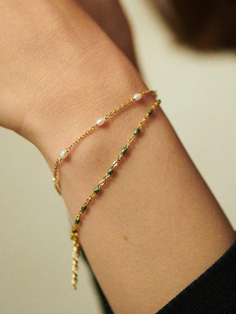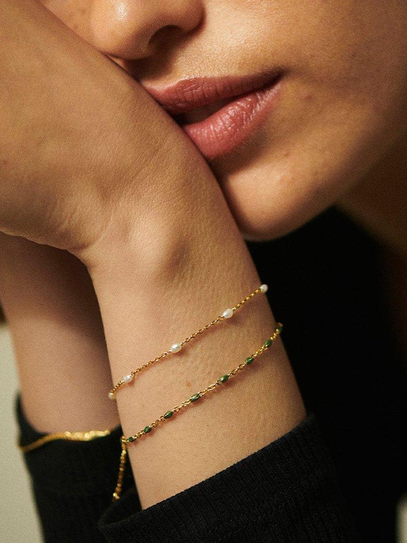 Add a splash of colour to your look with this beaded bracelet from Daisy London. The design features a series of coloured enamel beads on a fine chain secured with a lobster clasp and adjustable in length. The delicate style looks great on its own but can also be used as part of a layered look with other styles.