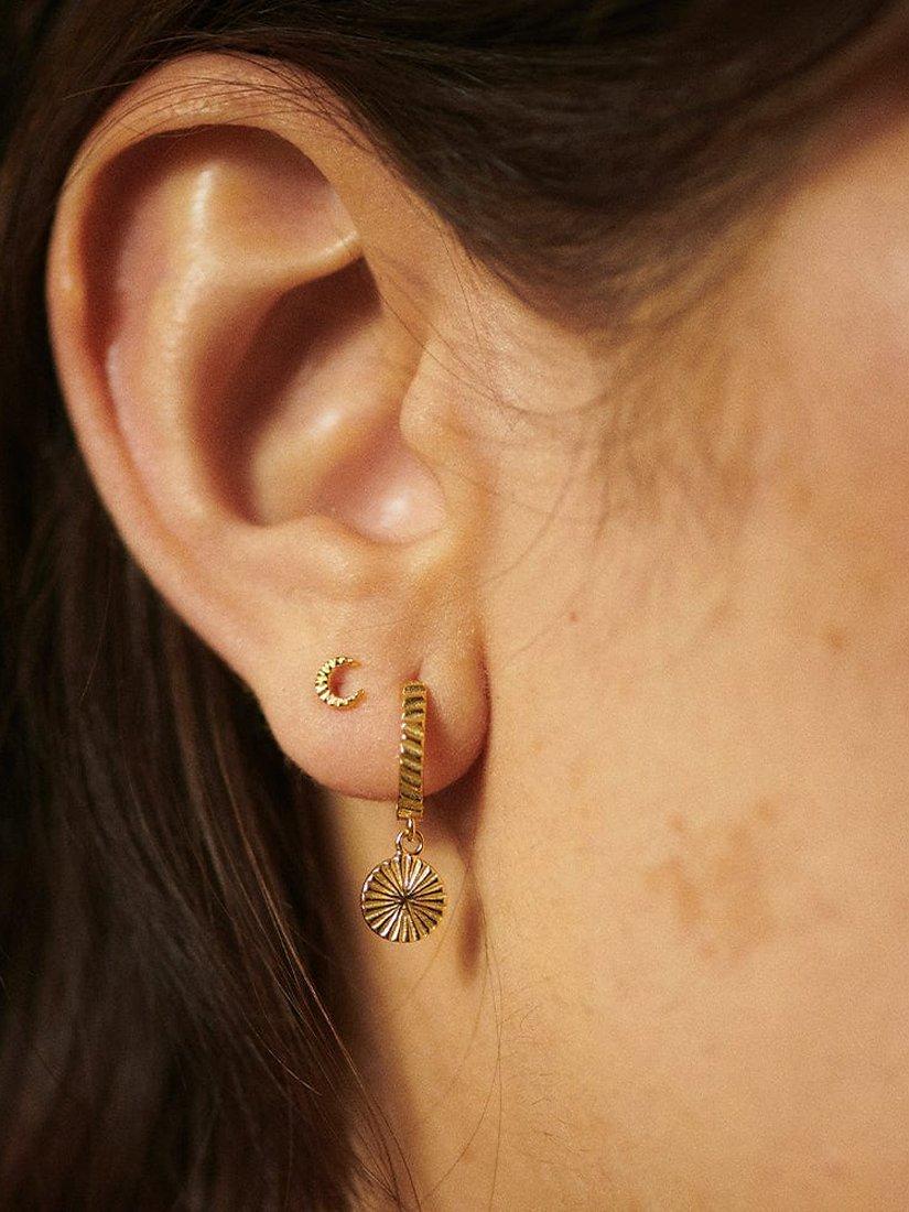Perfectly paired, the Estée Lalonde Luna Stud paired with the Estée Lalonde Luna Huggies are an everyday ear stack you won't want to be without. Both pairs of earrings boast a mix-and-match design of a full and recent moon completed with a textured finish for added appeal. For pierced ears only.