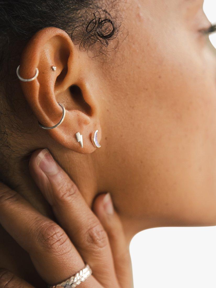 The coup de foudre just waiting to happen. These lightning bolt studs are made with 18ct gold plating and will make the perfect striking addition to any stack. Secured with post fittings, they are for pierced ears only.