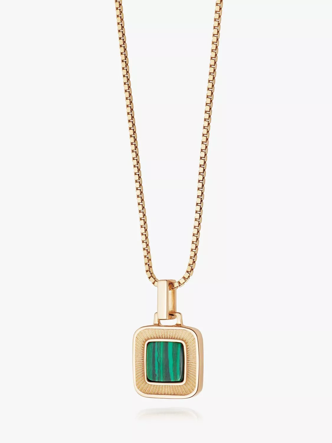 A simple contemporary style, this pendant necklace has a great geometric design with a malachite stone in the centre for a pop of colour. The pendant hangs from a fine chain that's adjustable in length for the perfect fit.