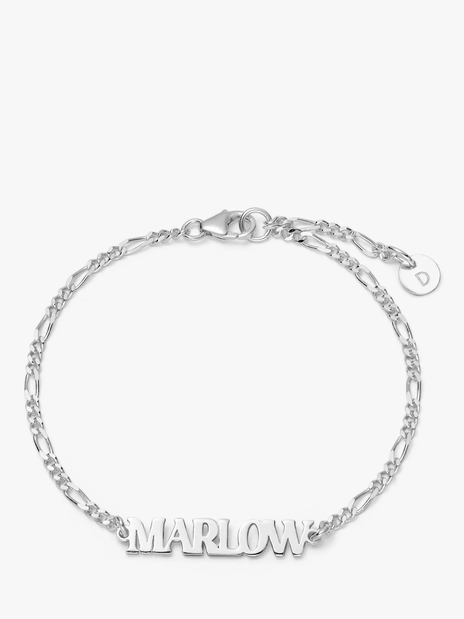 If you love a nameplate bracelet this one's for you. Choose to wear your name, favourite pet, place or person, the world's your oyster. The name is held in a timeless Figaro chain and is adjustable in length for the perfect fit.