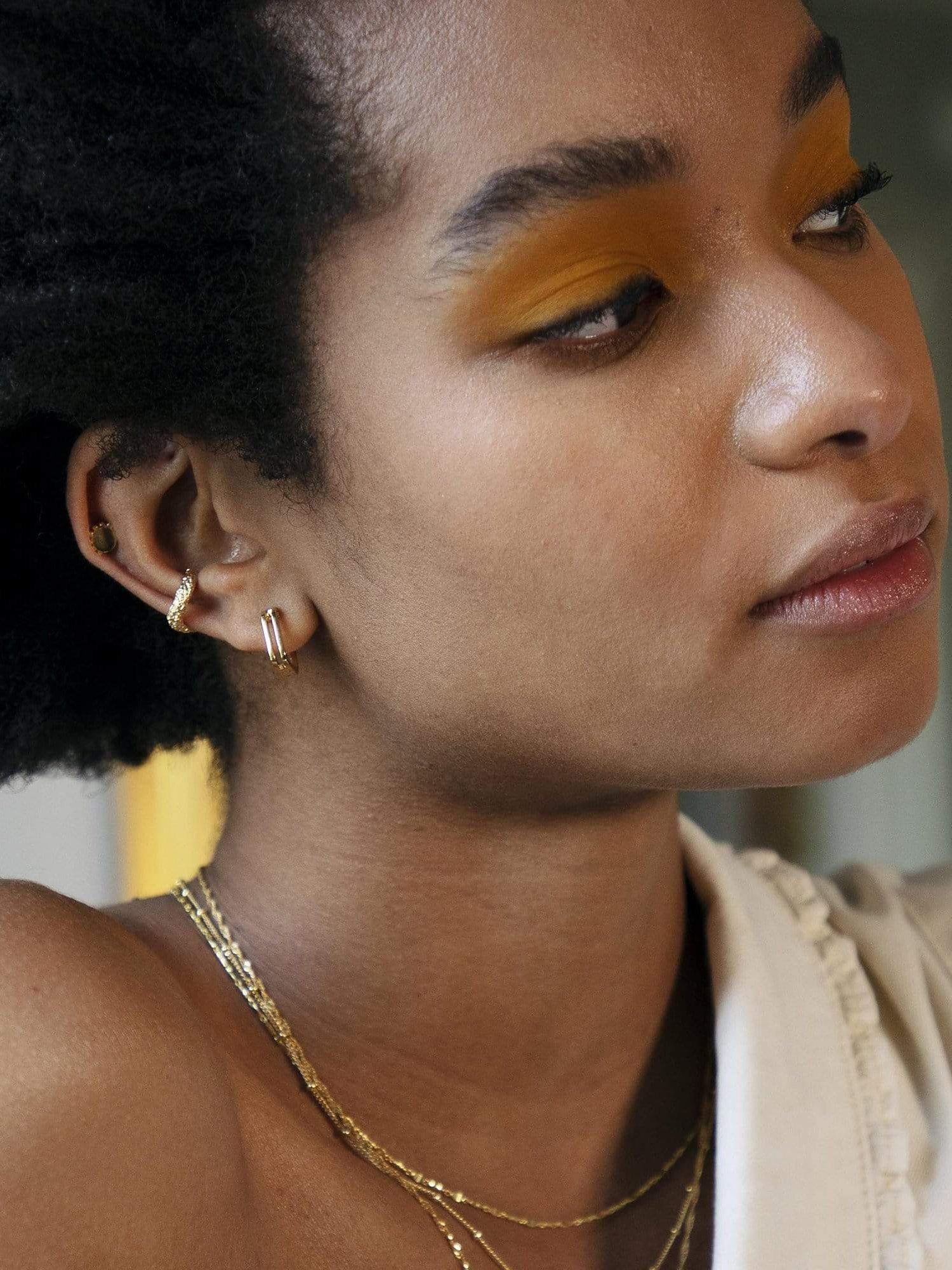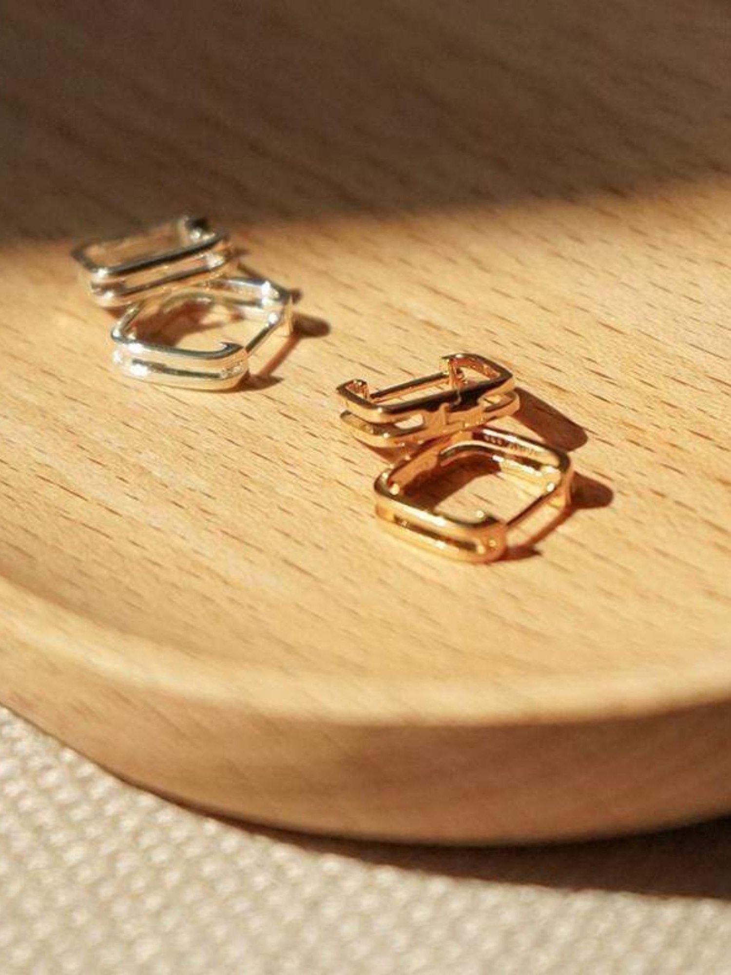 Reinventing the ageless hoops, these Daisy London earrings offer a more structured contemporary look with an open frame and articulated centre for easy wear. The earrings are made for pierced ears and will look as good solo as they do stacked up.