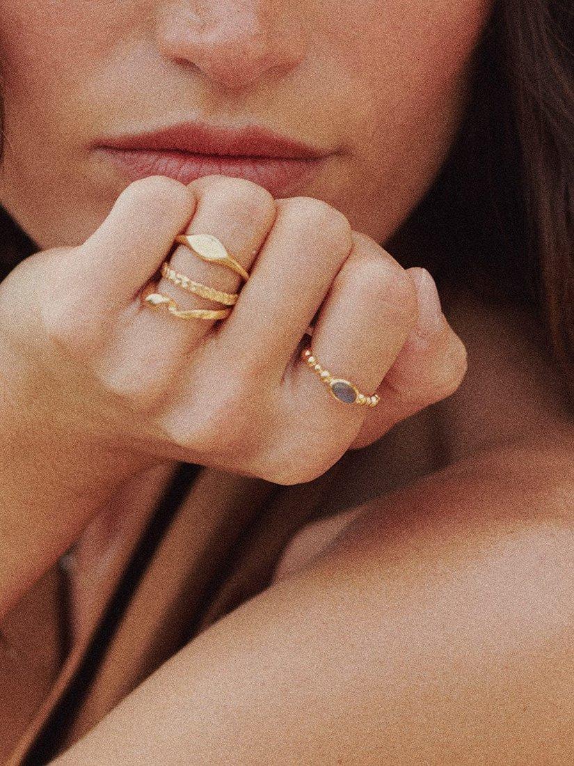 Stack this Labradorite ring with chunkier textures and other stones for a fresh take on your ring rotation. Made in 100% recycled sterling silver with 18ct gold plate.