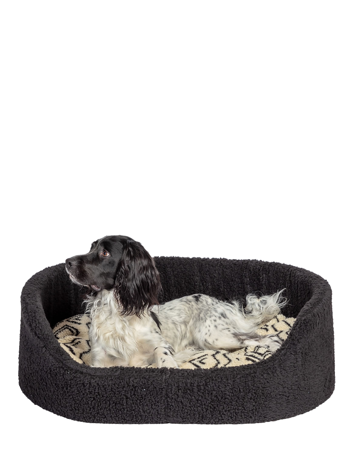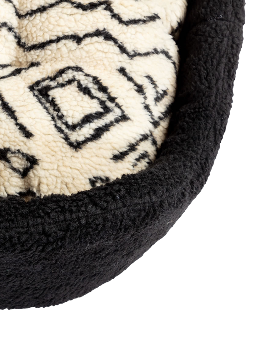 This Slumber Bed offers the ideal space for pets to relax, with its high sides the perfect place for head resting! Knitted in the UK, the fluffy fibres of this sherpa fleece create an extremely soft and snuggly sleeping experience. Neutral Geometric - a berber inspired design using geometric lines, in neutral colours for a contemporary feel. The bed is made with Ecoflex filling, a material made from a majority of recycled fibres. This Spring Bond material is hypoallergenic, chemical free and 100% recyclable. It features an ‘S’ shape structure for enhanced recovery and long lasting comfort. The mattress is filled with a soft and fluffy polyester fibre filling which provides a lot of warmth and comfort. Made from a blend of standard and recycled PET flake, made from recycled plastic bottles which are cleansed, shredded and heated to form fibres. Both fillings are fire retardant to British Standard 5852.