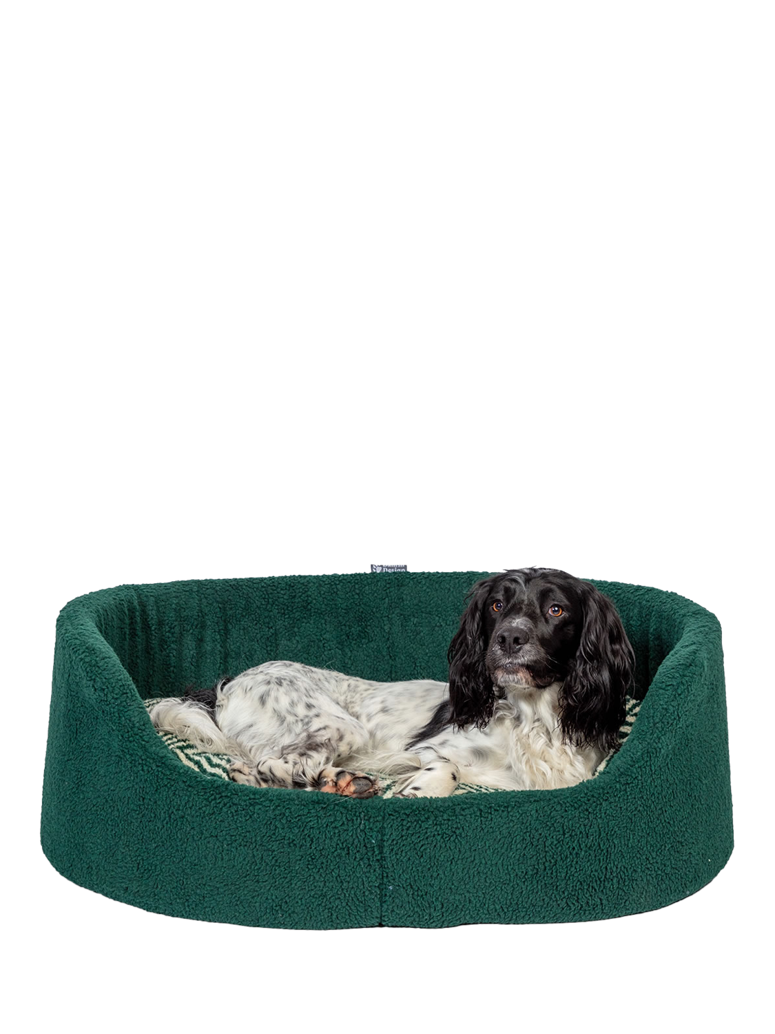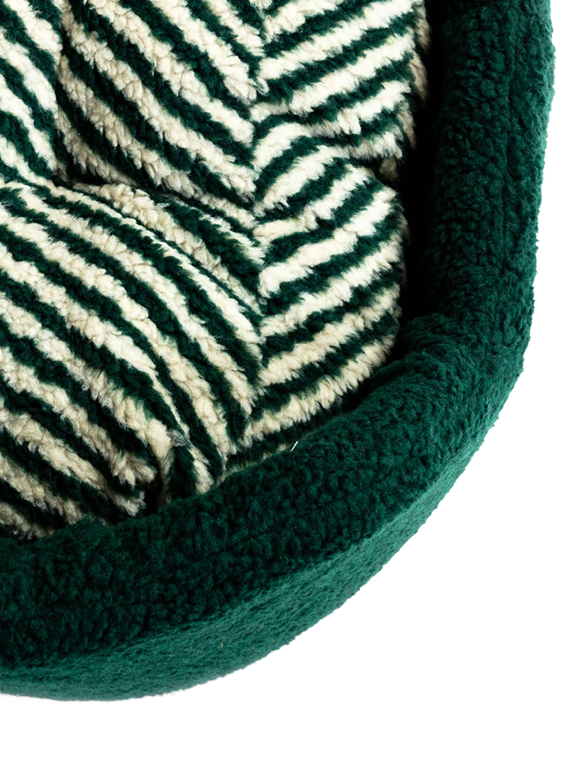 This Slumber Bed offers the ideal space for pets to relax, with its high sides the perfect place for head resting! Knitted in the UK, the fluffy fibres of this sherpa fleece create an extremely soft and snuggly sleeping experience. The bed is made with Ecoflex filling, a material made from a majority of recycled fibres. This Spring Bond material is hypoallergenic, chemical free and 100% recyclable. It features an ‘S’ shape structure for enhanced recovery and long lasting comfort. The mattress is filled with a soft and fluffy polyester fibre filling which provides a lot of warmth and comfort. Made from a blend of standard and recycled PET flake, made from recycled plastic bottles which are cleansed, shredded and heated to form fibres. Both fillings are fire retardent to British Standard 5852.