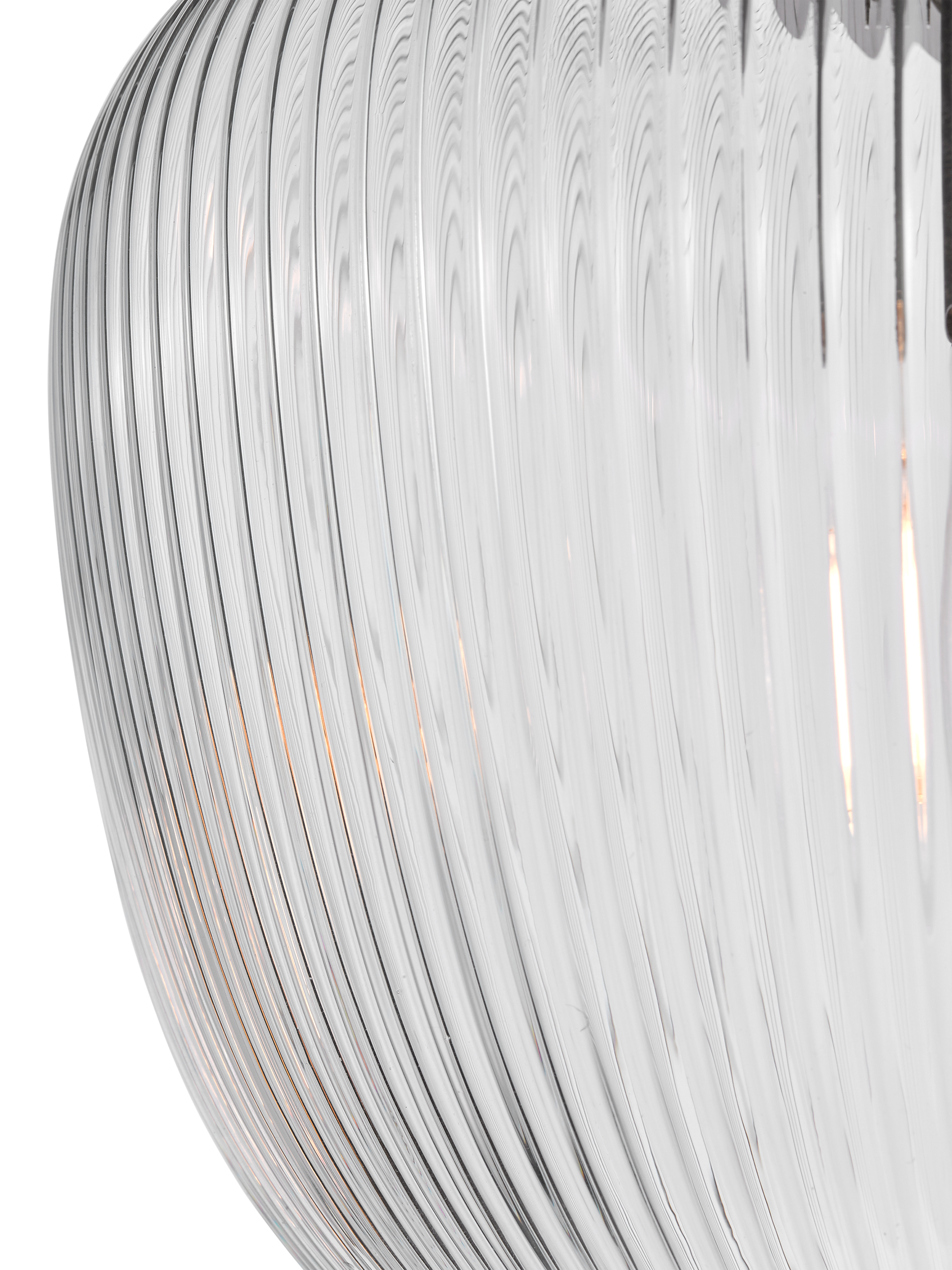 The acorn-shaped shade adds a modern touch, while the ribbed texture of the glass beautifully diffuses light. Great for entryways, bedrooms or cosy living areas. An effortless blend of metal and glass for a refined and on-trend look.
