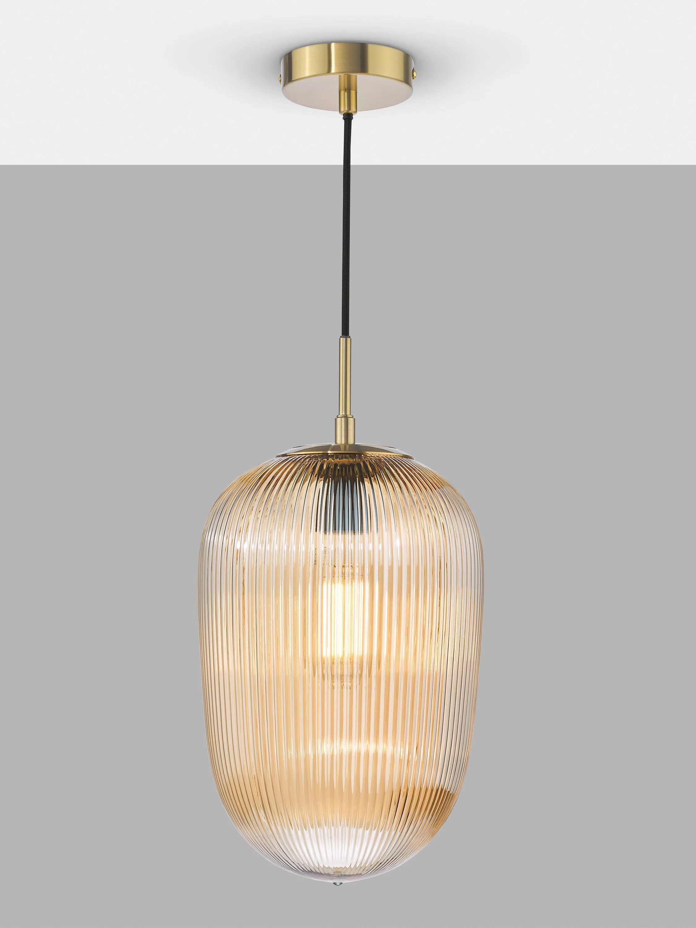 Illuminate your space with the Abrielle Pendant, a stunning blend of modern elegance and warm ambience. This pendant features a brushed bronze finish that beautifully complements the amber ribbed glass, creating a soft, inviting glow.
