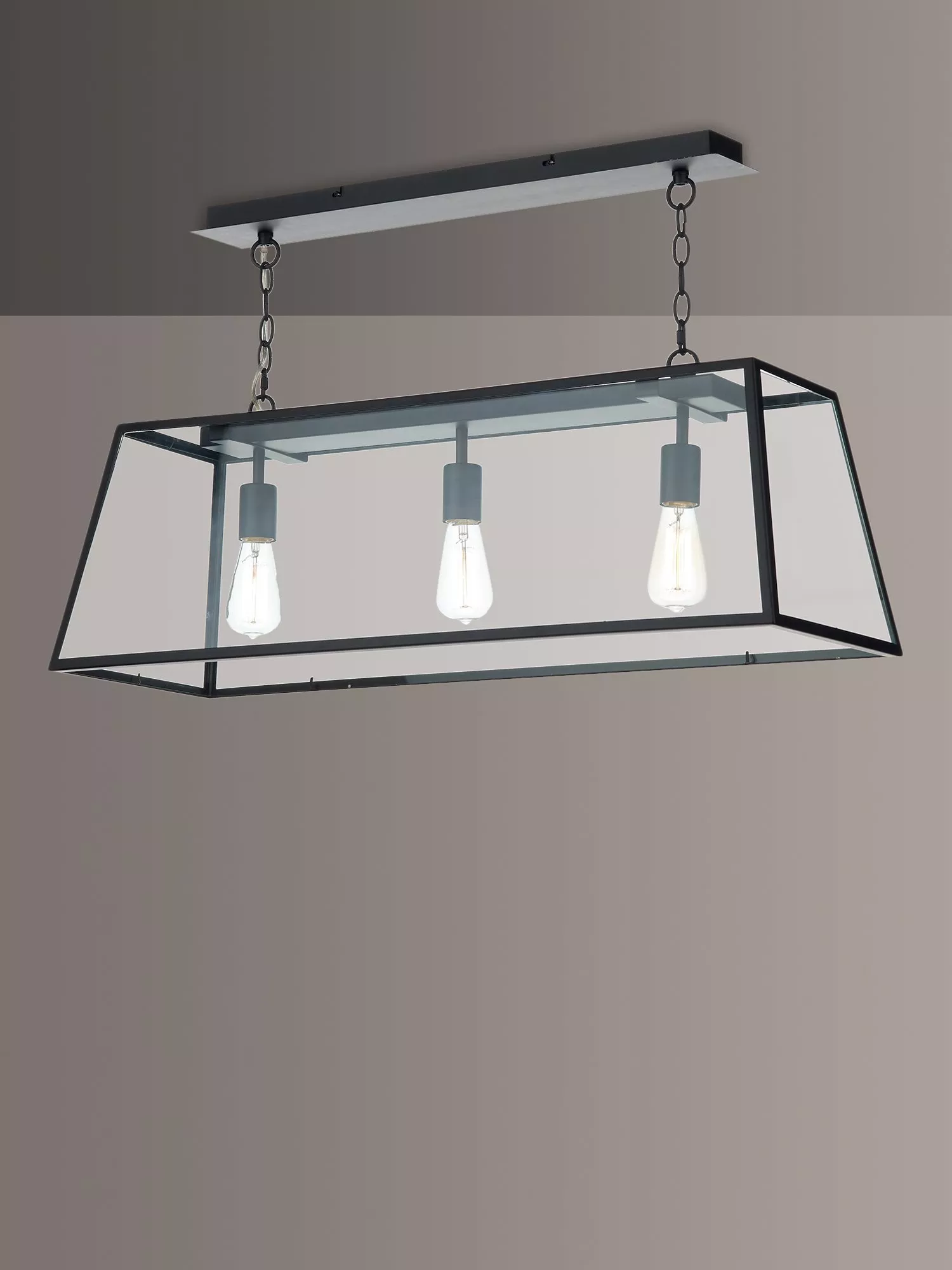 With its modern, industrial design and matt finish, this oversized ceiling light looks especially striking when installed above kitchen islands or dining tables. It's suspended from a height-adjustable chain and offers a warm glow of light. Vintage, filament bulbs work best with this light as they'll enhance its statement look.