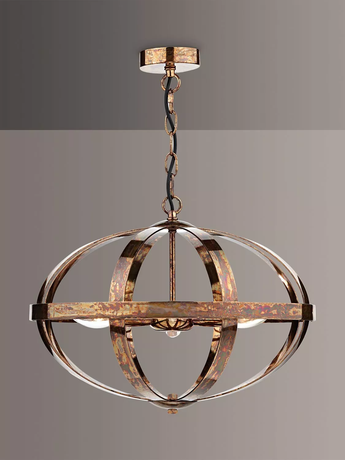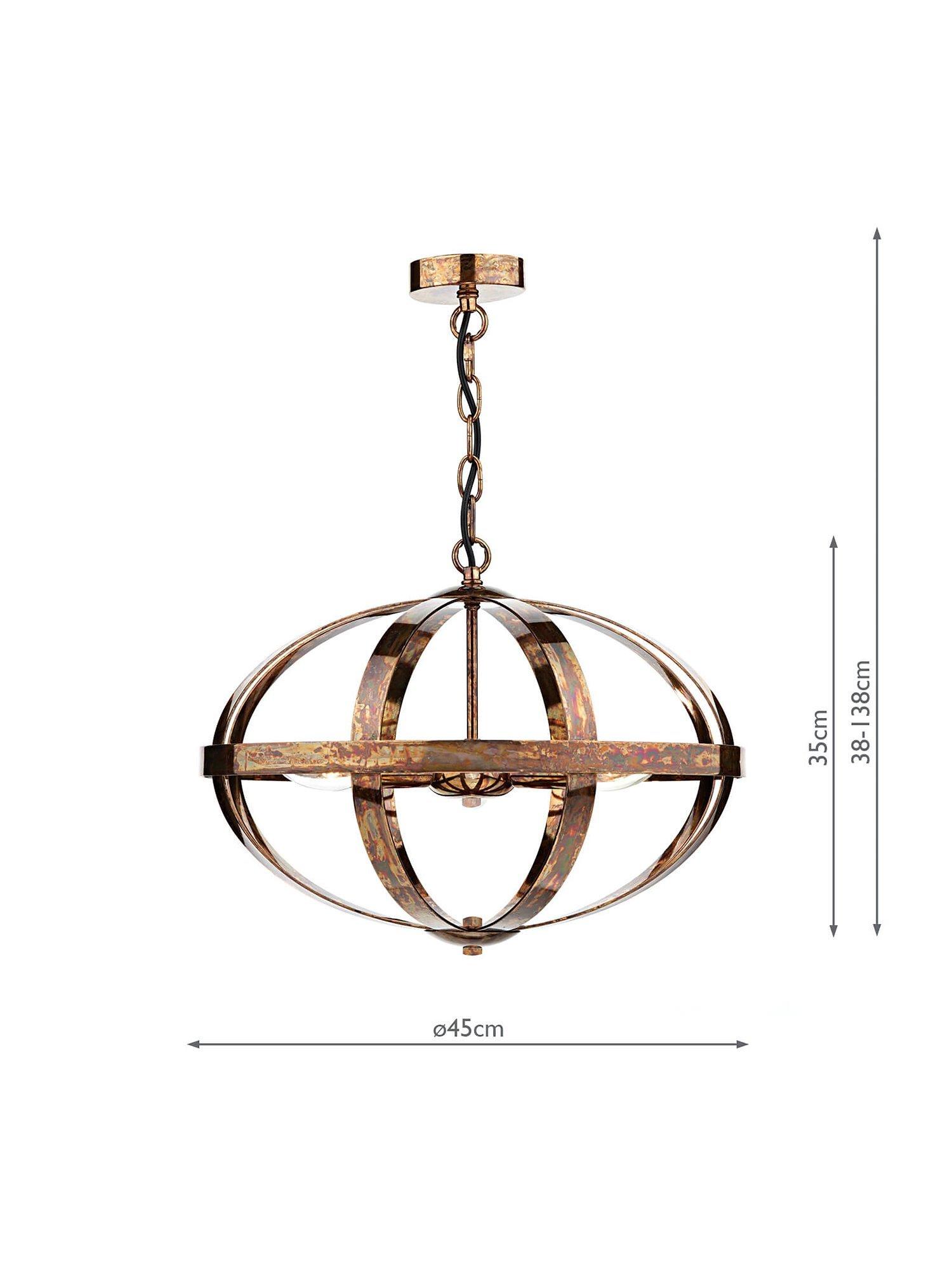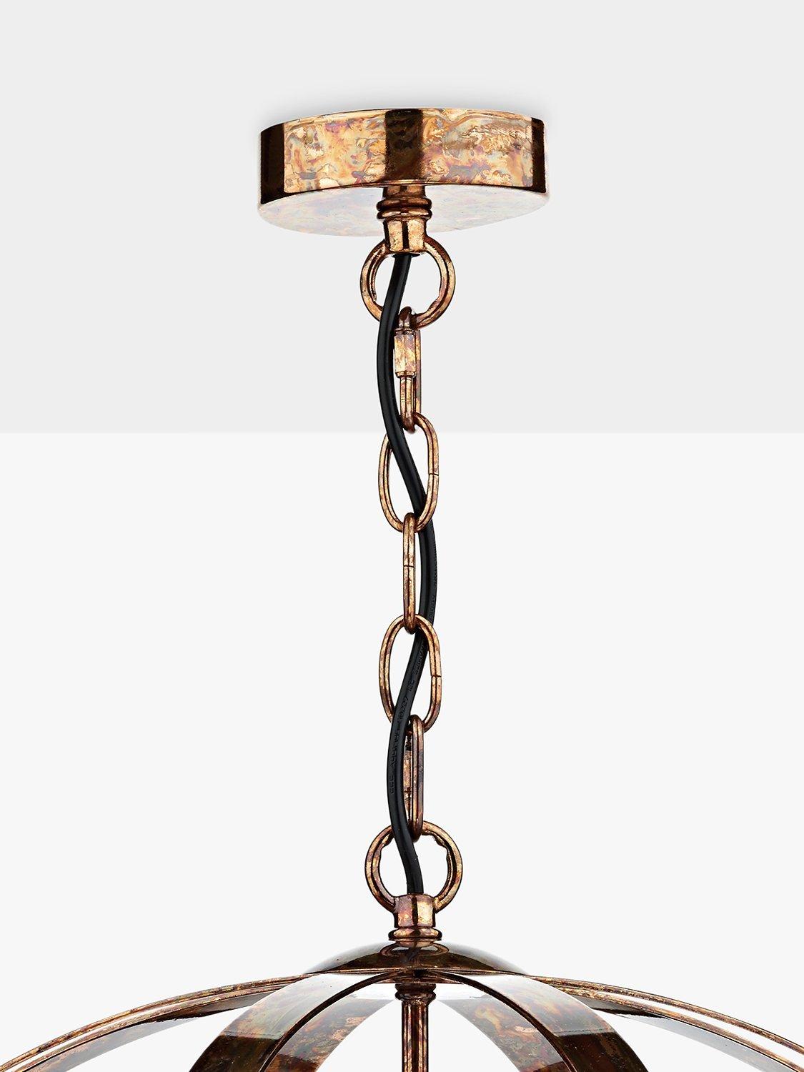 This distinctive ceiling light is made from metal and suspended from a height-adjustable chain cable. The Mottled Copper option will work well in industrial-inspired interiors, while the Satin Chrome option is ideal for more modern interiors. Light spills out from the centre to provide a warm glow.