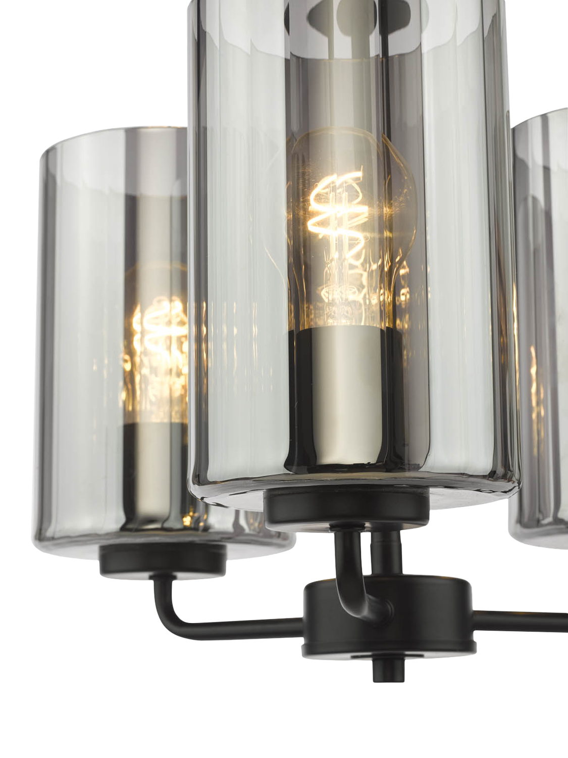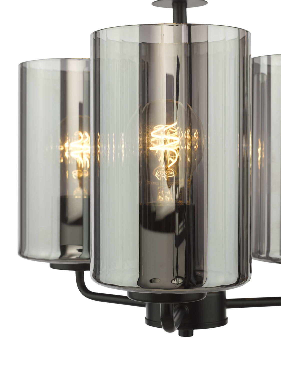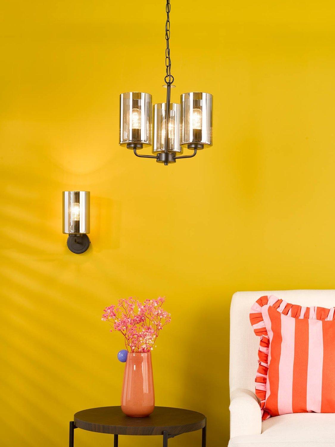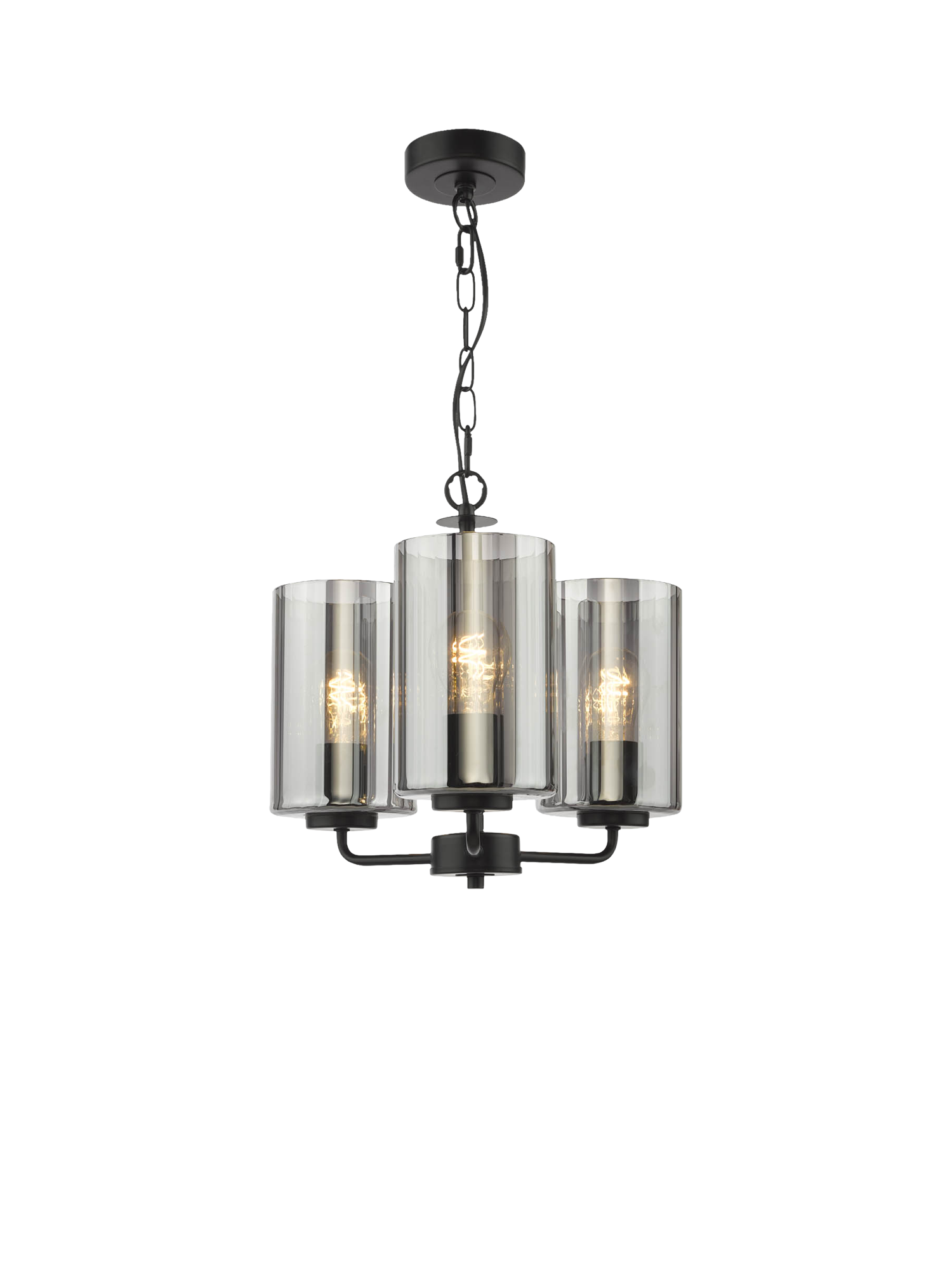 The Daylin three-arm pendant light in muted satin black brings modern glamour and sleek simplicity to larger spaces. Crafted from powder-coated steel with a luxury braided cable, it features three oversized smoked glass shades with a subtle rippled texture, casting a soft, lustrous glow.