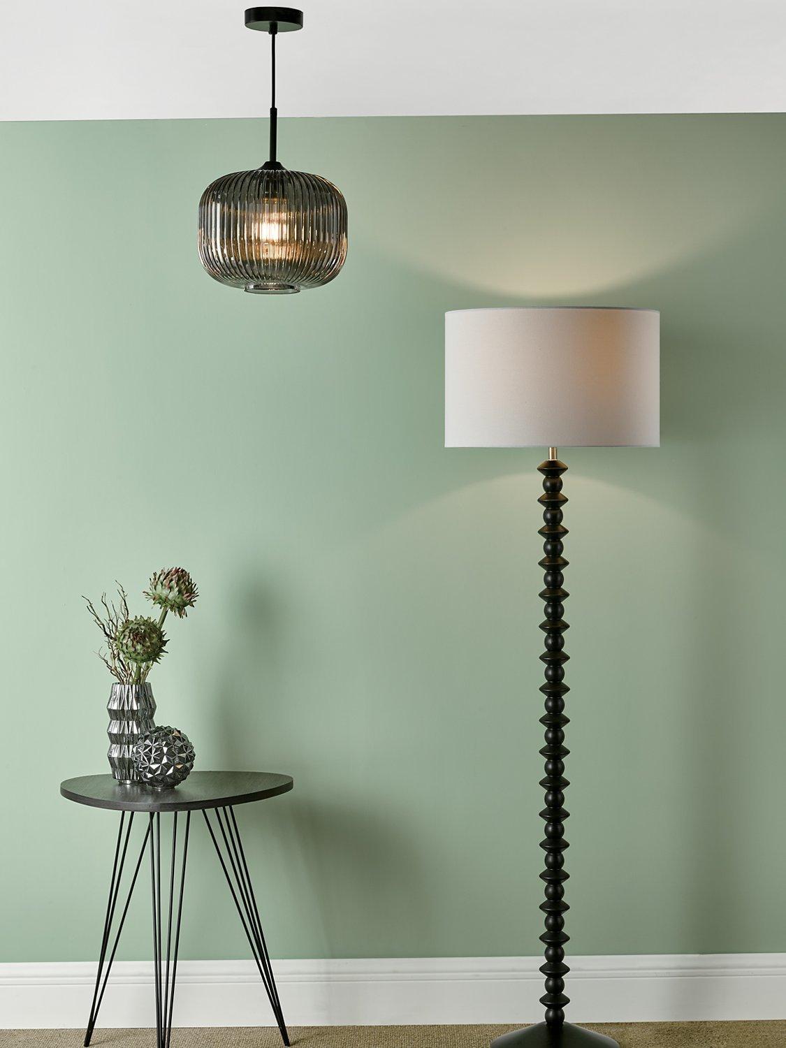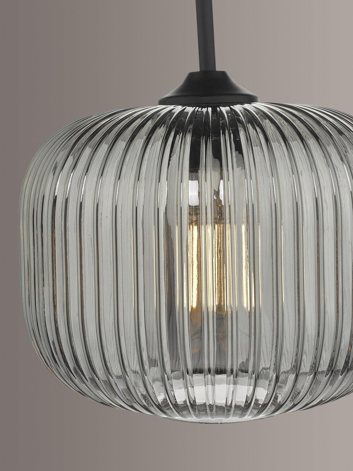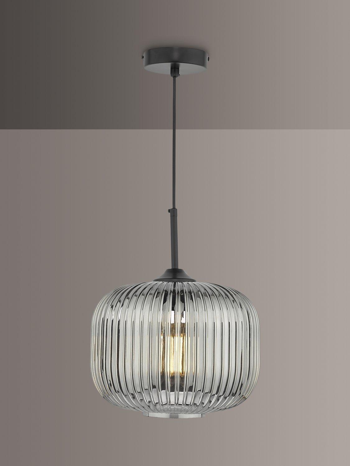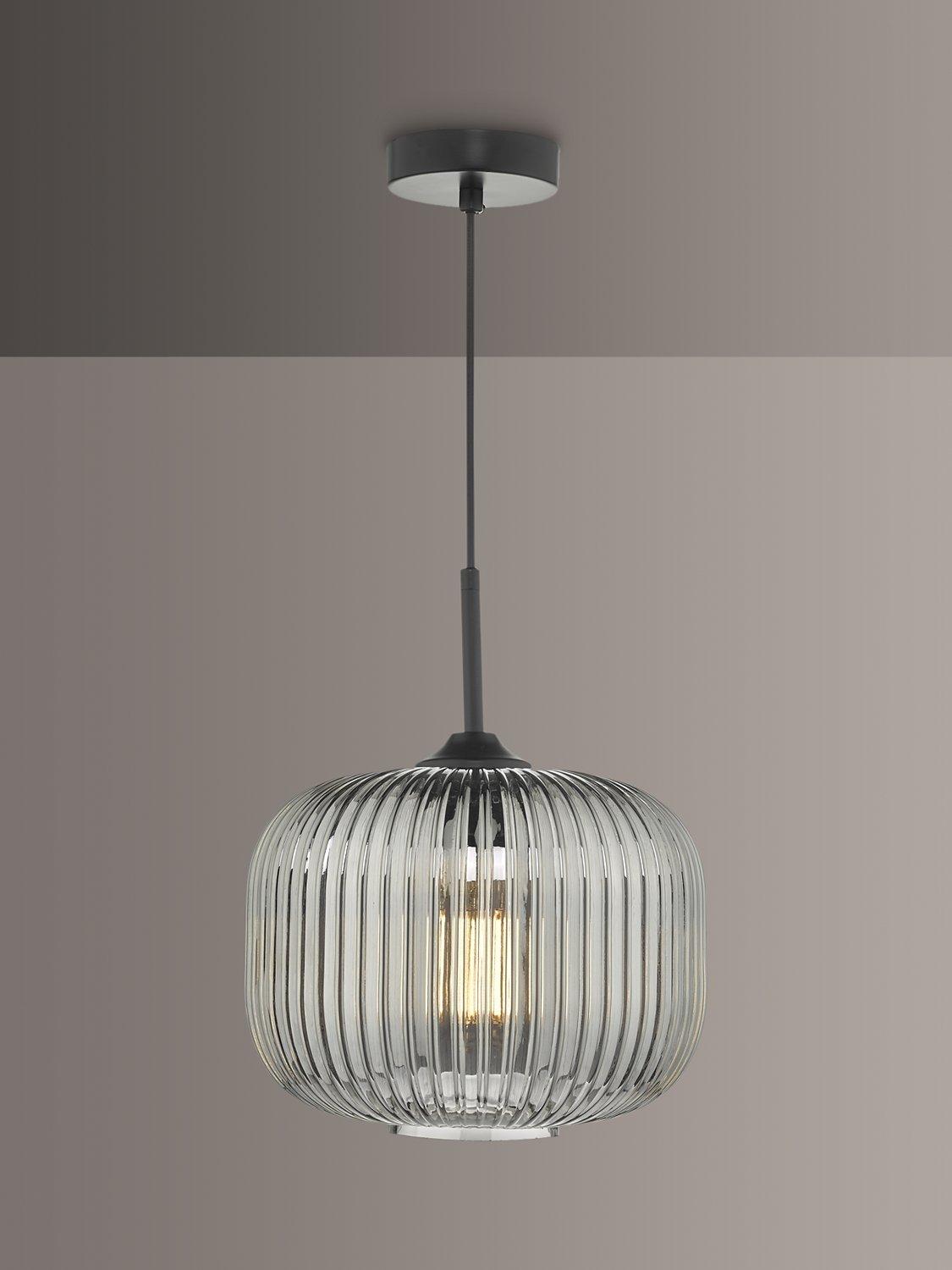Made from ribbed glass in a smoked finish, this ceiling light has a modern-retro look that will draw the eye in your space. When illuminated, it will create a distinctive pattern of light on nearby walls and enhance a warm glow. Suspended from a height-adjustable braided cable.