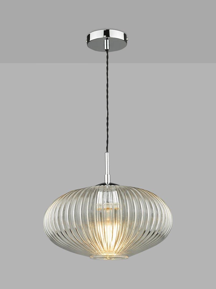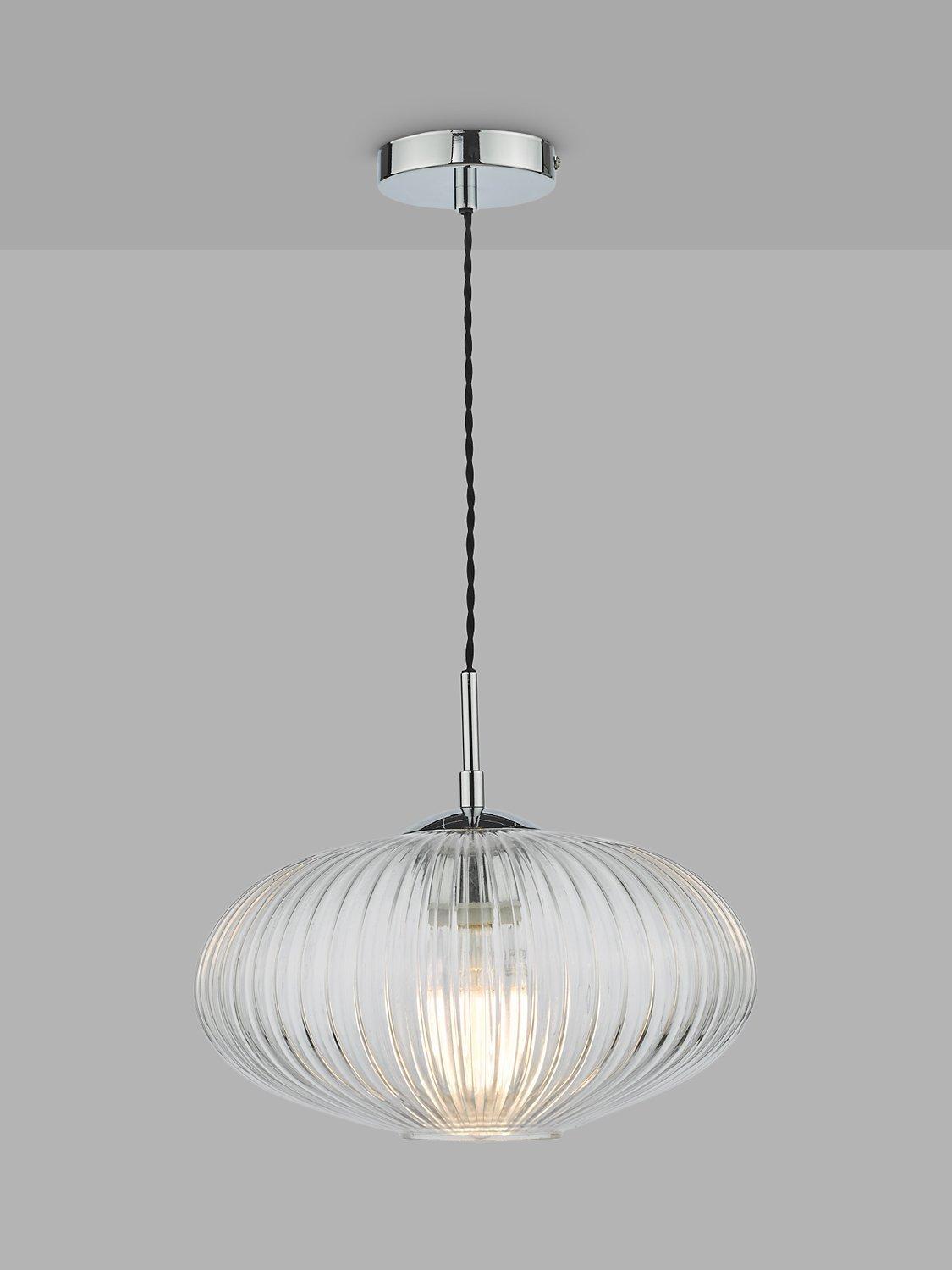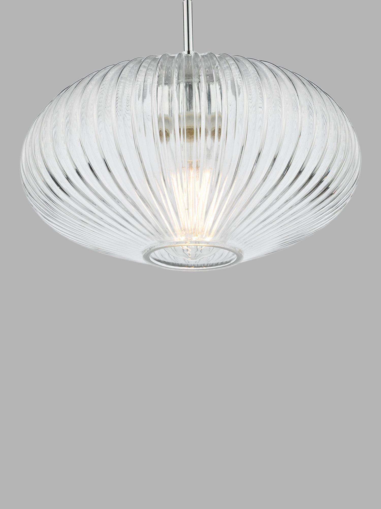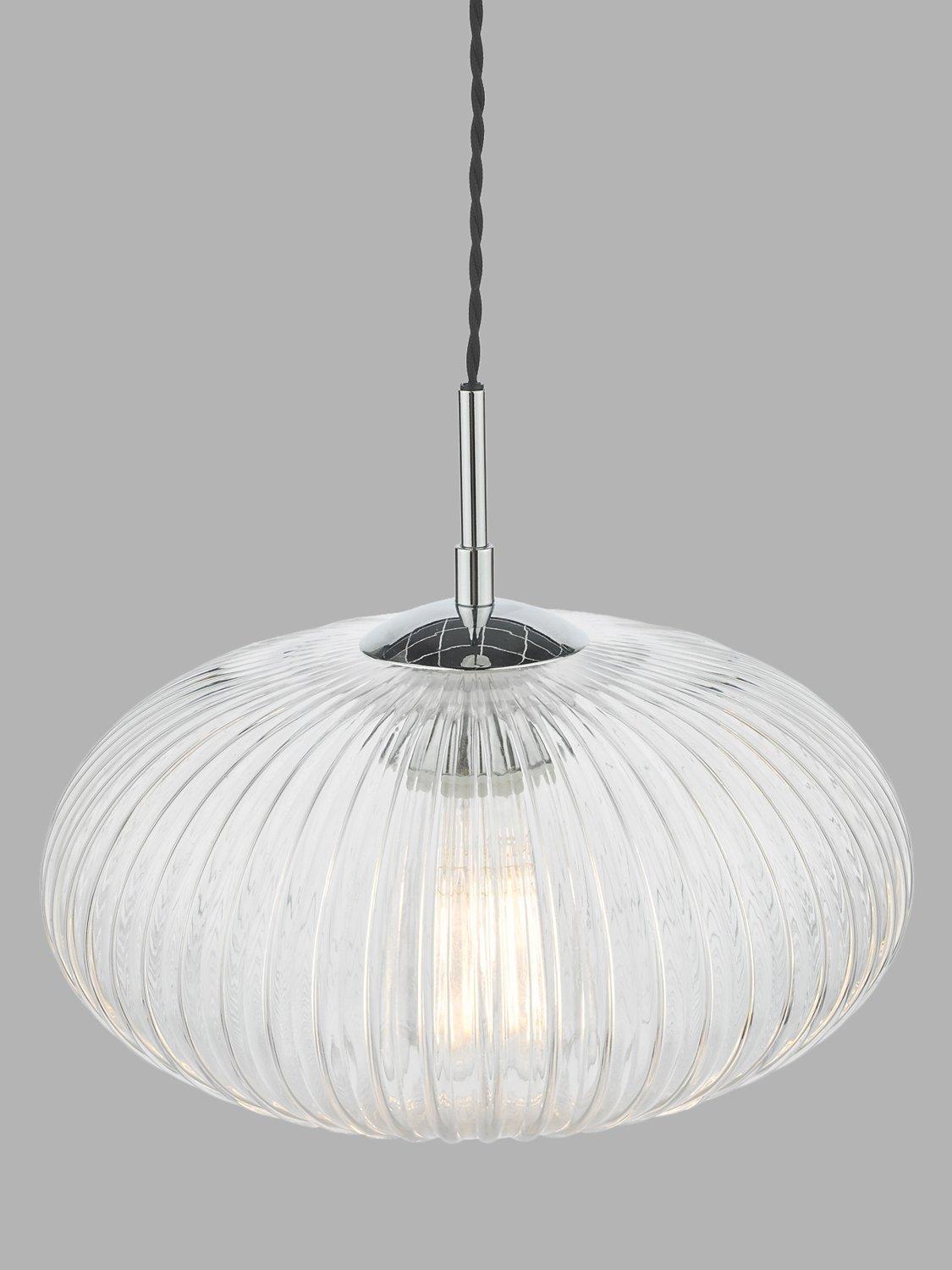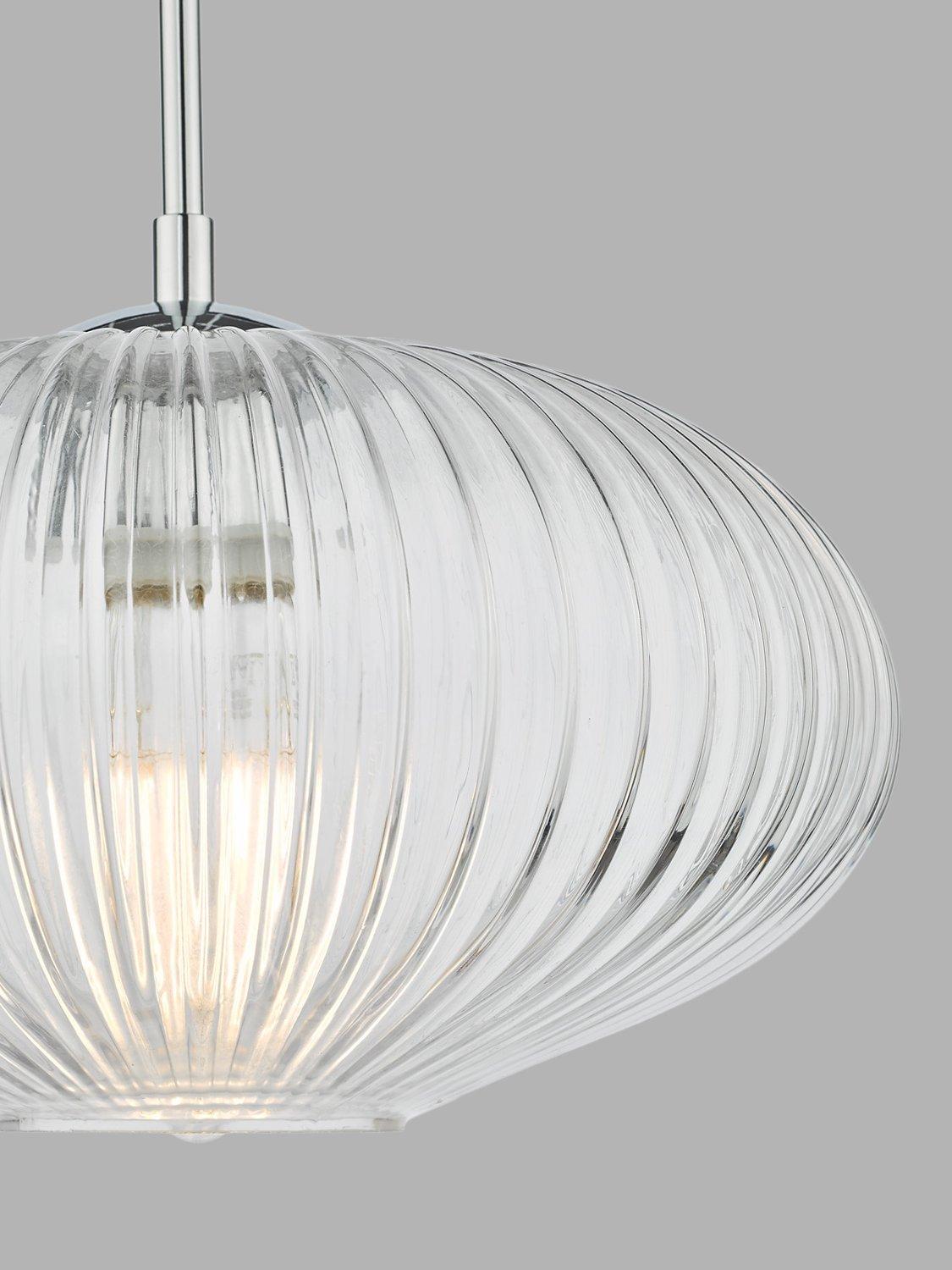 This light is just the right style if you want to curate a calm and restful environment at home. Its ribbed glass design adds tactile interest, but also reduces the glare from the light and polished chrome metal detail is the perfect design complement. A simple, single pendant, it's easy to style around your home but would work especially well in bedrooms or living spaces. It's height-adjustable at the point of installation, so you could also try styling it in rows or in a cluster over a breakfast bar. One LED bulb is required.