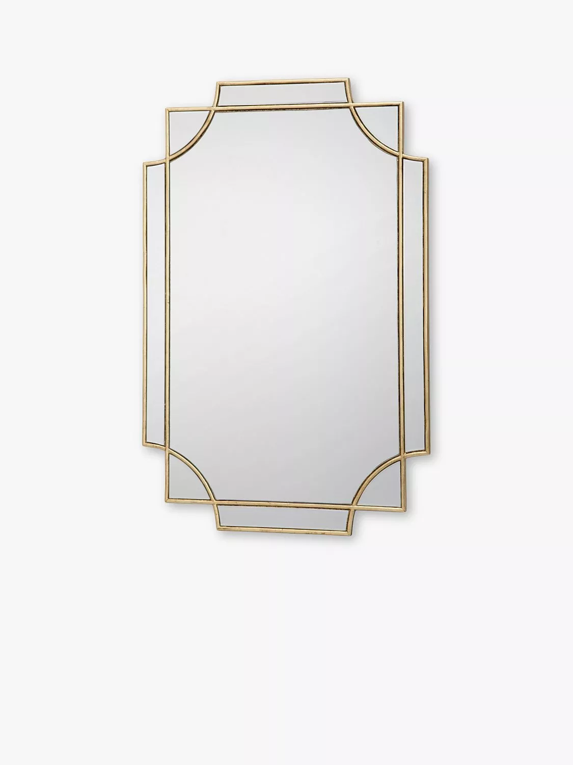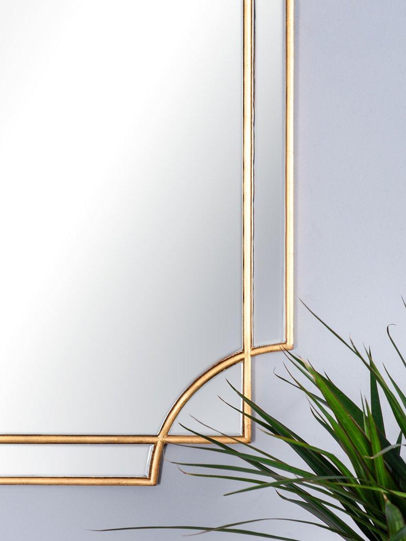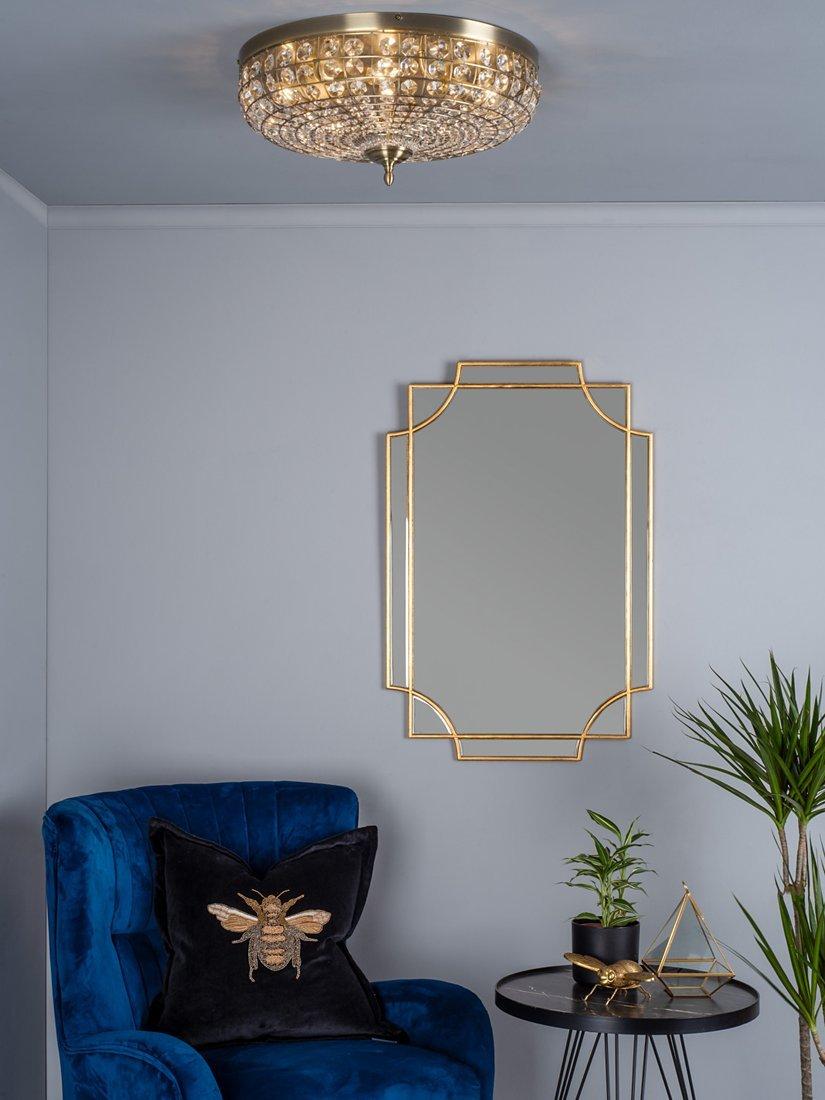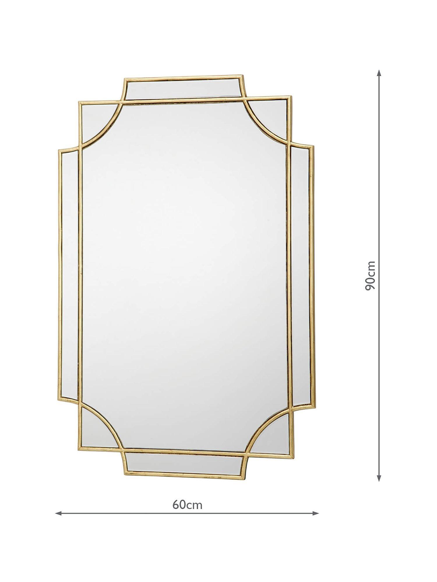 The Guapo mirror from Där is inspired by Hollywood Regency style with intersecting gilded metal frames in a metallic finish. This mirror is ready to hang on your wall using the fittings on the back.