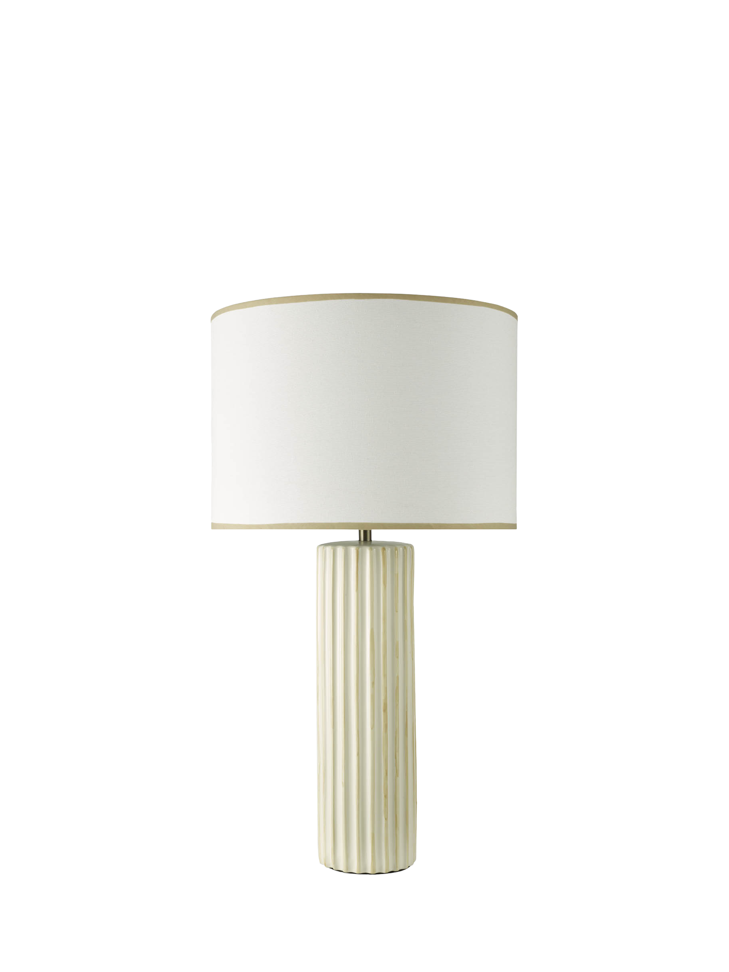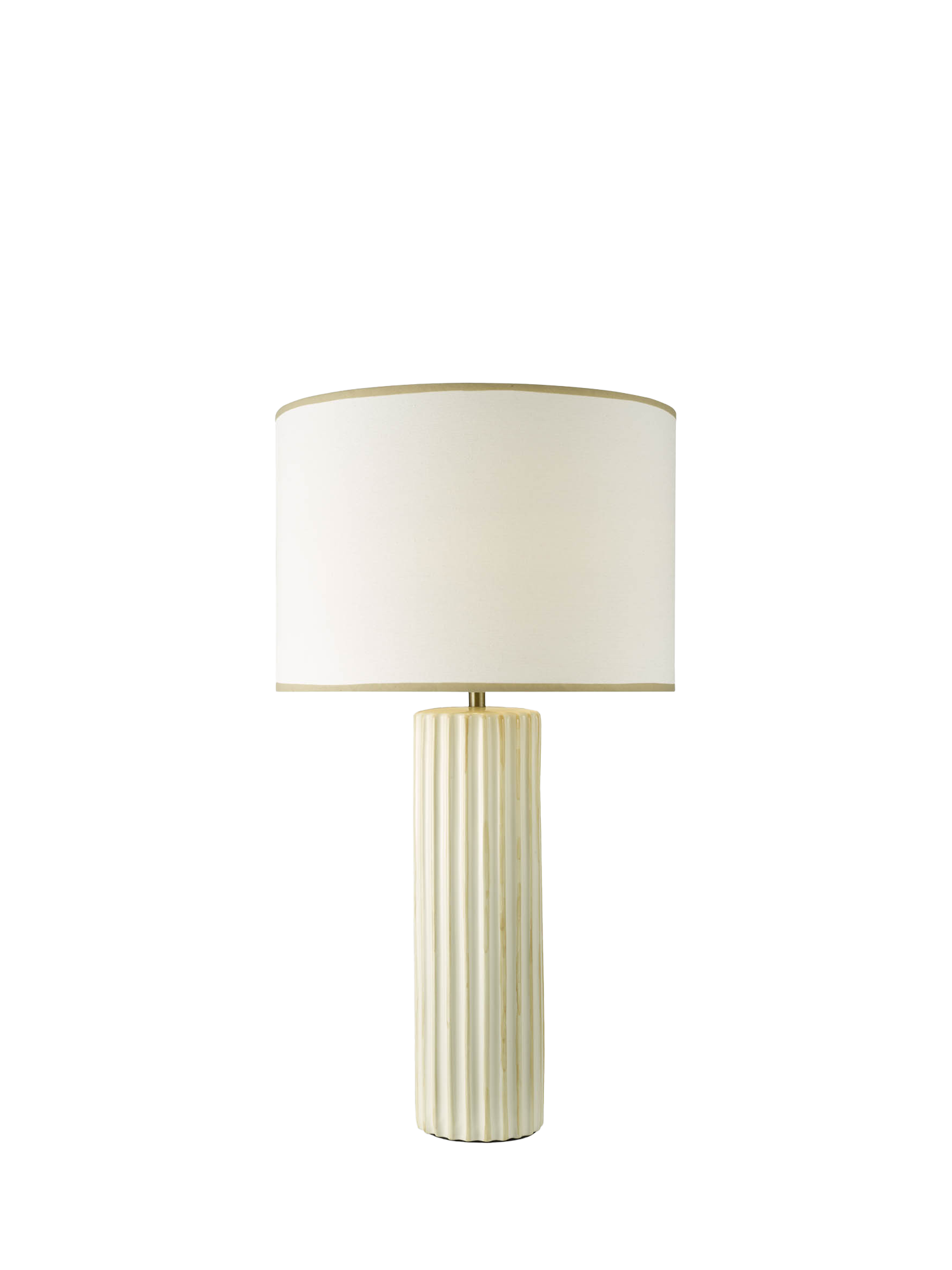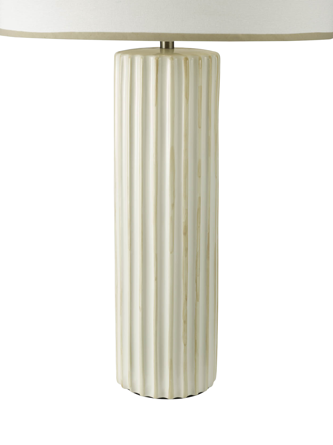 The Idella table lamp brings contemporary refinement and quiet presence to interiors. Its ceramic column base in soft neutral tones is detailed with subtle cashmere-highlighted ribs that add depth and texture.
