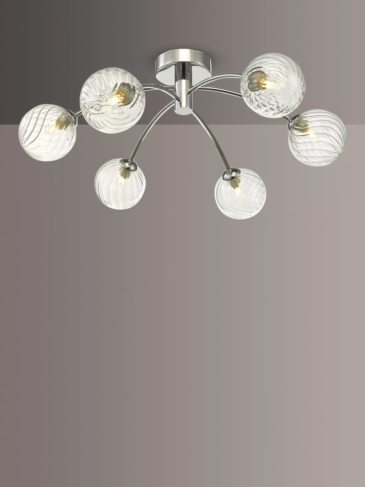 The twisted blown-glass shades give this ceiling light a decorative edge. With six arms, it will cast light around your room, and its semi-flush design makes it ideal for installing in rooms with low ceilings. The polished chrome metal work lends a premium finish.