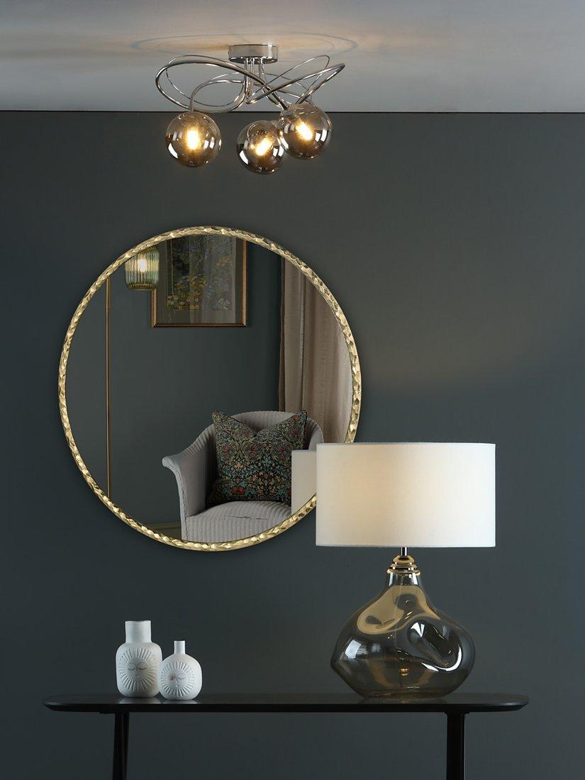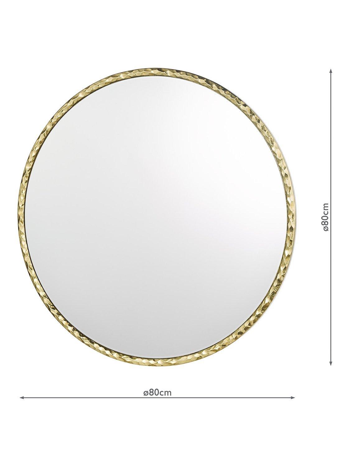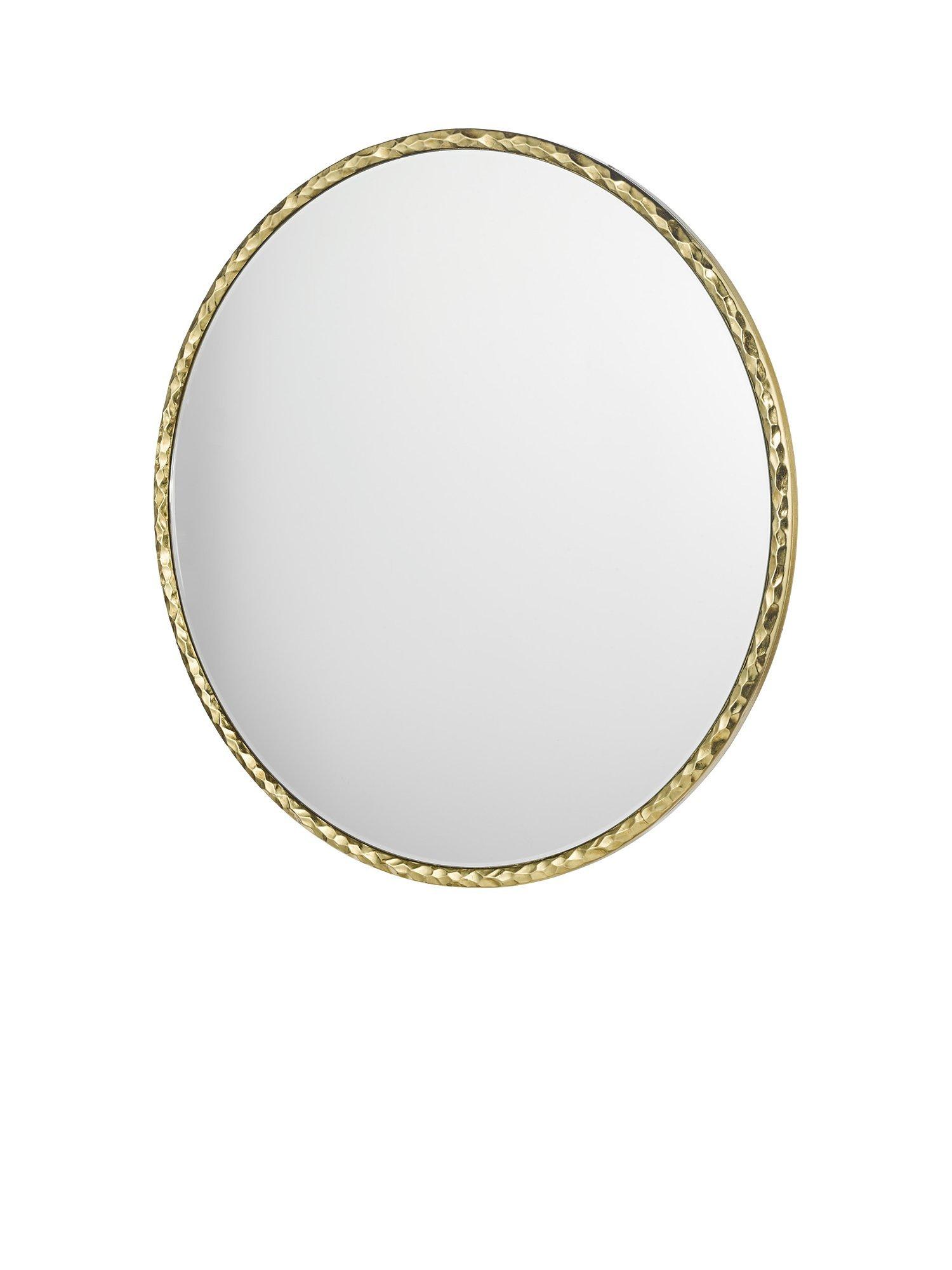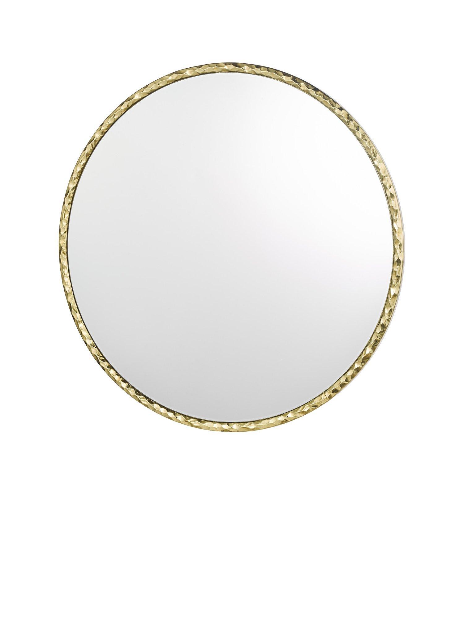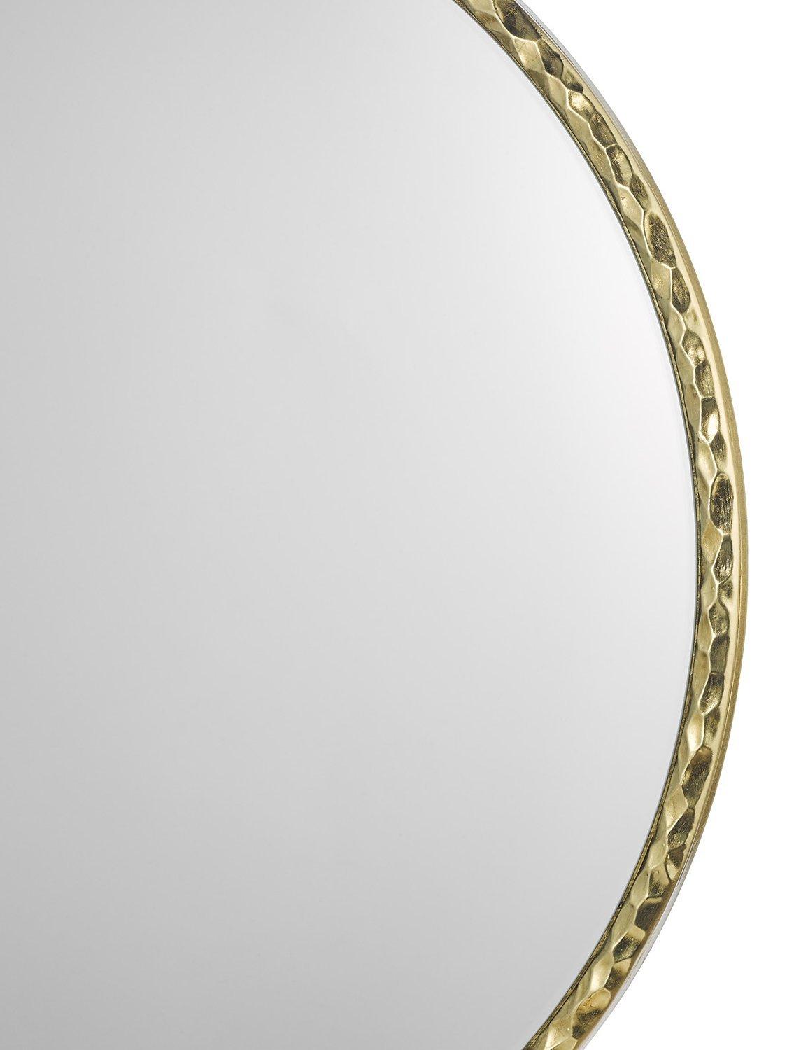 Hammered texture round wall mirror from Där with a gold-toned resin frame and polished finish. A modern style with a refined industrial touch. The design not only serves a practical purpose but also doubles as a striking piece of wall art.