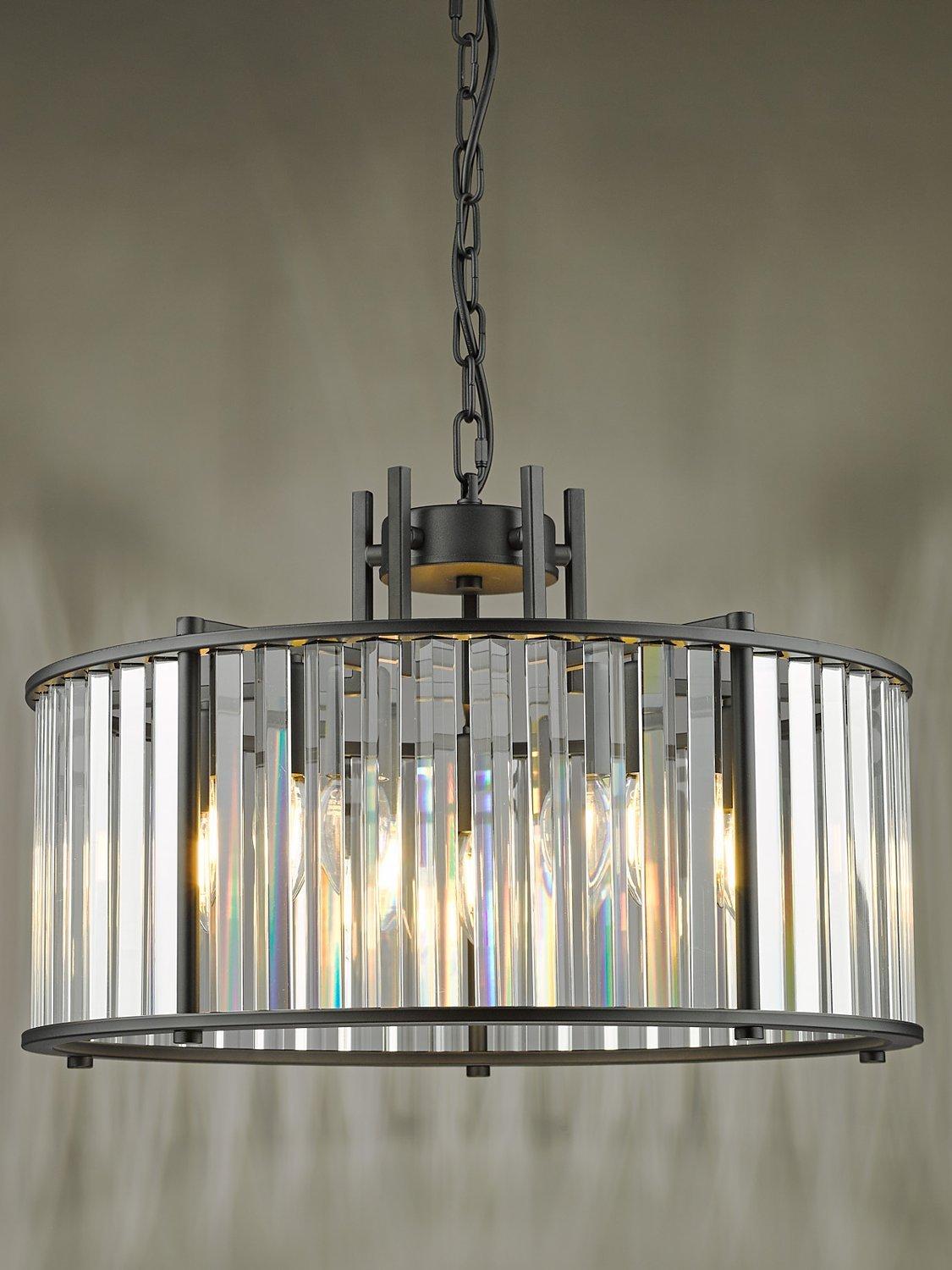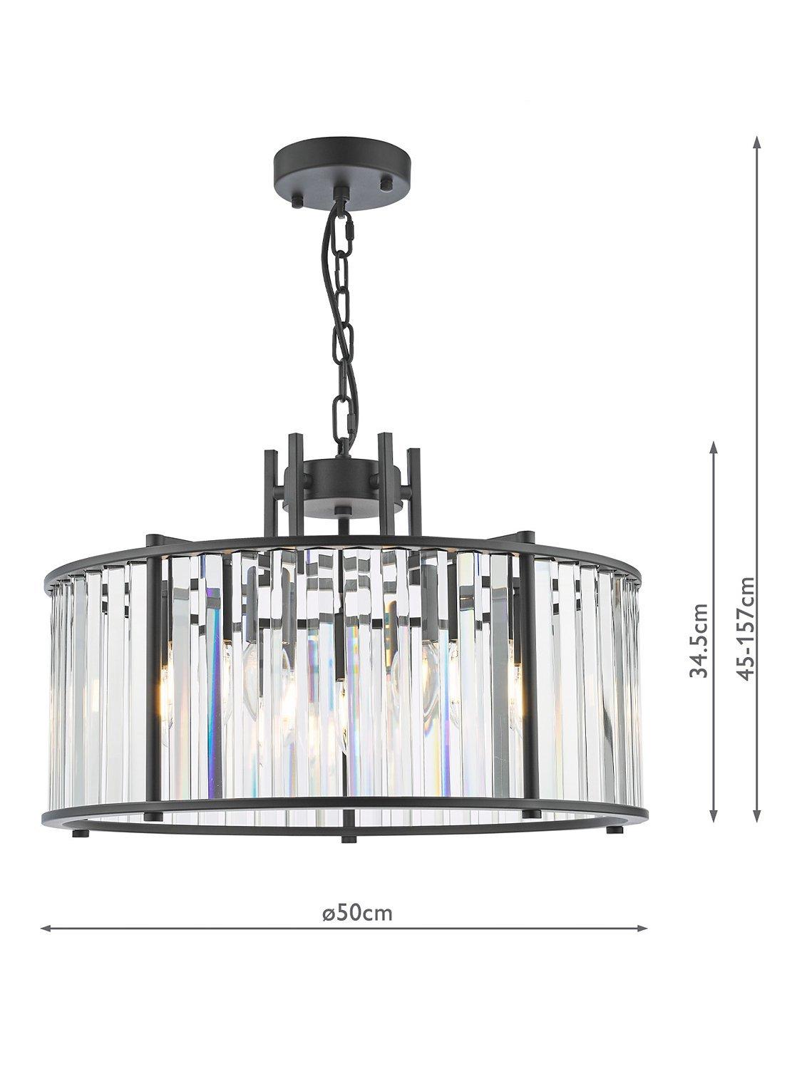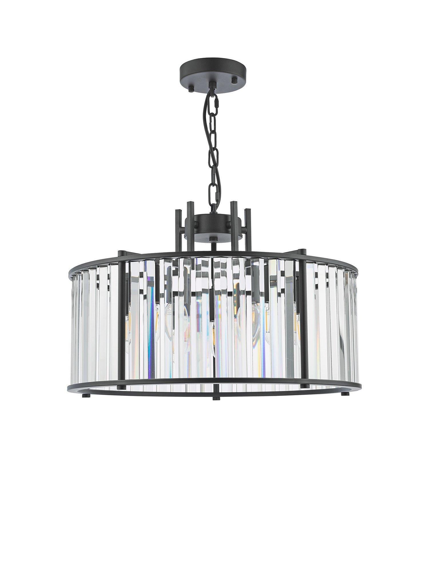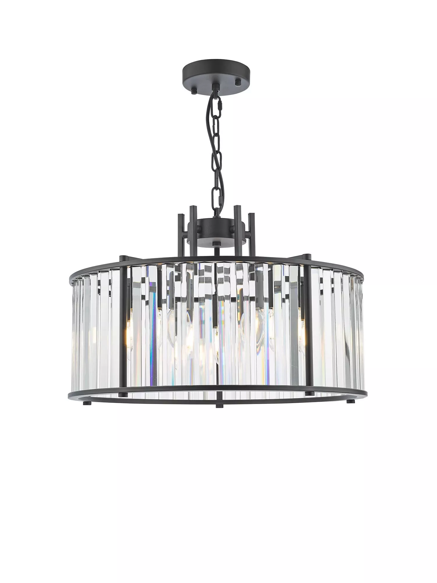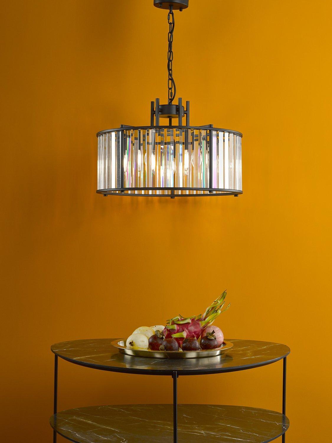 The stunning Kiran pendant includes a satin finished frame that exudes timeless elegance and sophistication. The faceted glass adds a touch of glamour and creates an eye-catching visual effect when illuminated. Suspended from a matching chain, the Kiran ceiling light is ideal for adding a contemporary touch whether it's suspended over a dining table or in a hallway. Height is adjustable at the point of installation.