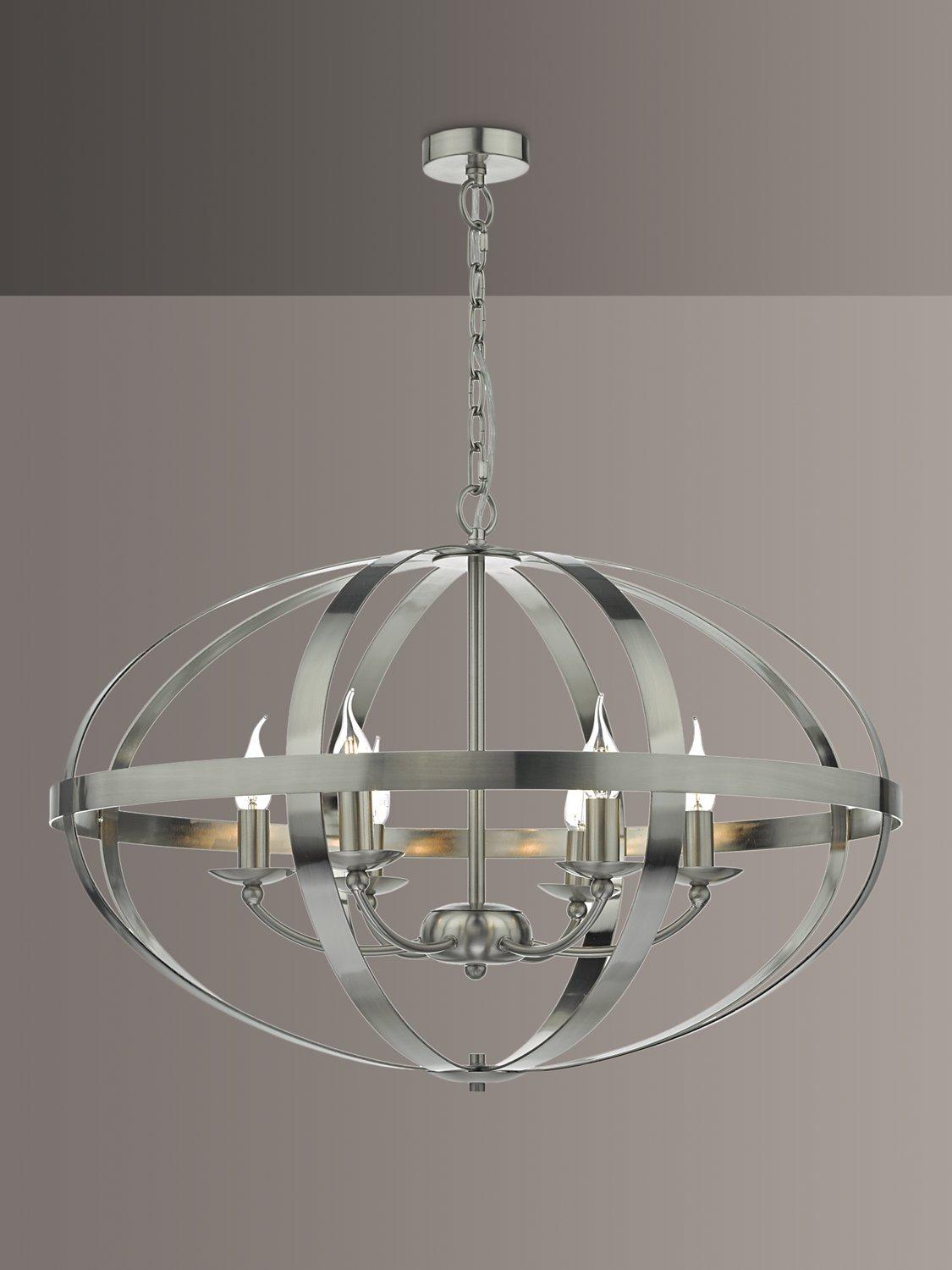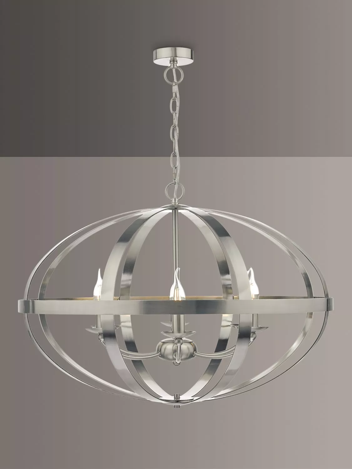 In a larger size, this ceiling light is designed with curved metal ribbons that form an elliptical orbit around a central pendant. The Mottled Copper option is ideal for industrial-inspired interiors, while the Satin Chrome option will suit modern settings. Light spills out from the centre to cast a glow around your room and the chain cable is height-adjustable on installation.