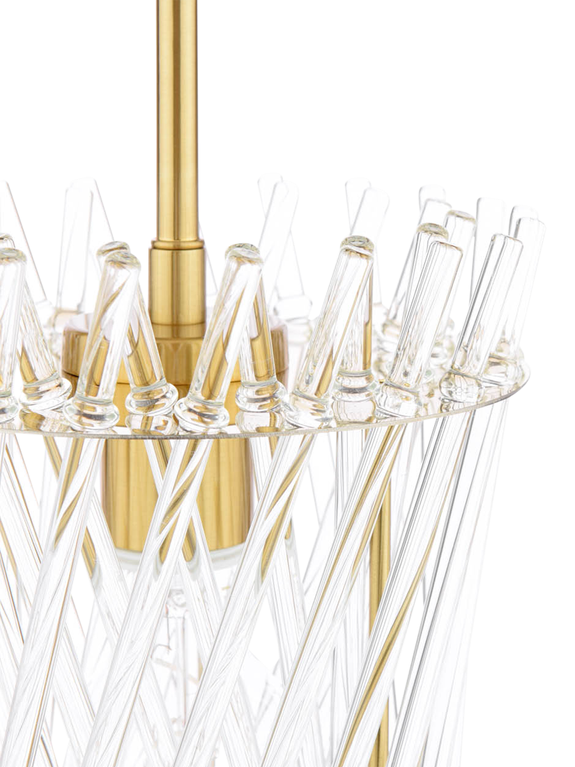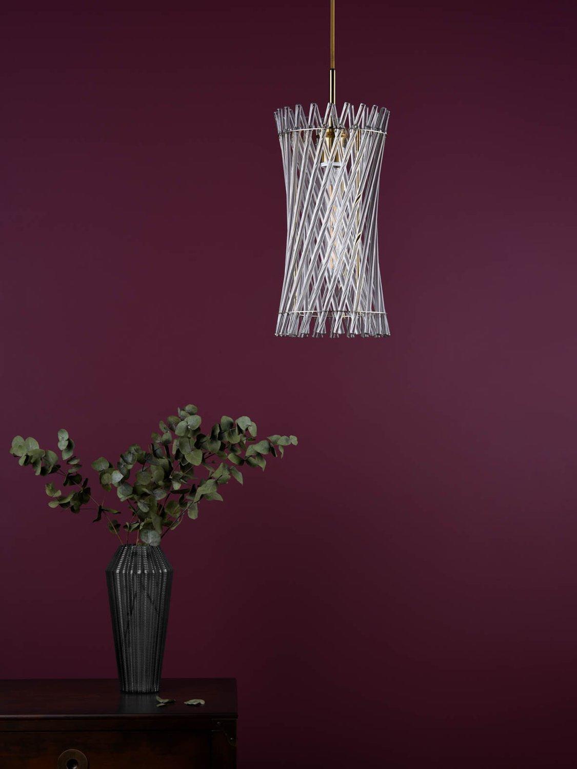 The Loire Pendant delivers sculptural elegance in a refined, compact form. Finished in warm natural brass, the fitting is surrounded by slender glass rods arranged to create visual intrigue. Measuring just 20cm in diameter, Loire is ideal for smaller spaces or for styling in multiples over kitchen islands. When illuminated, it casts a softly diffused glow, offering decorative impact without overwhelming the space.