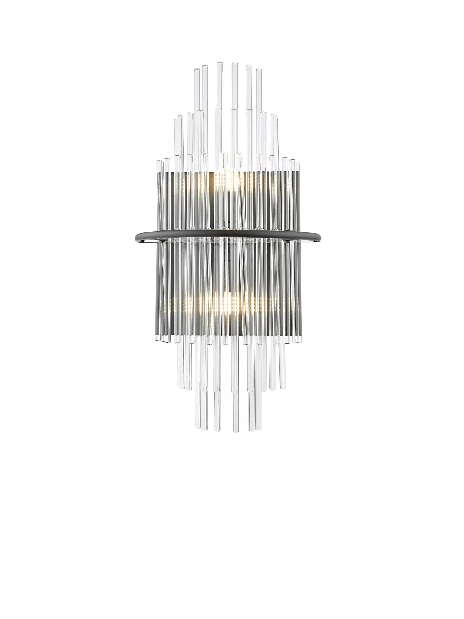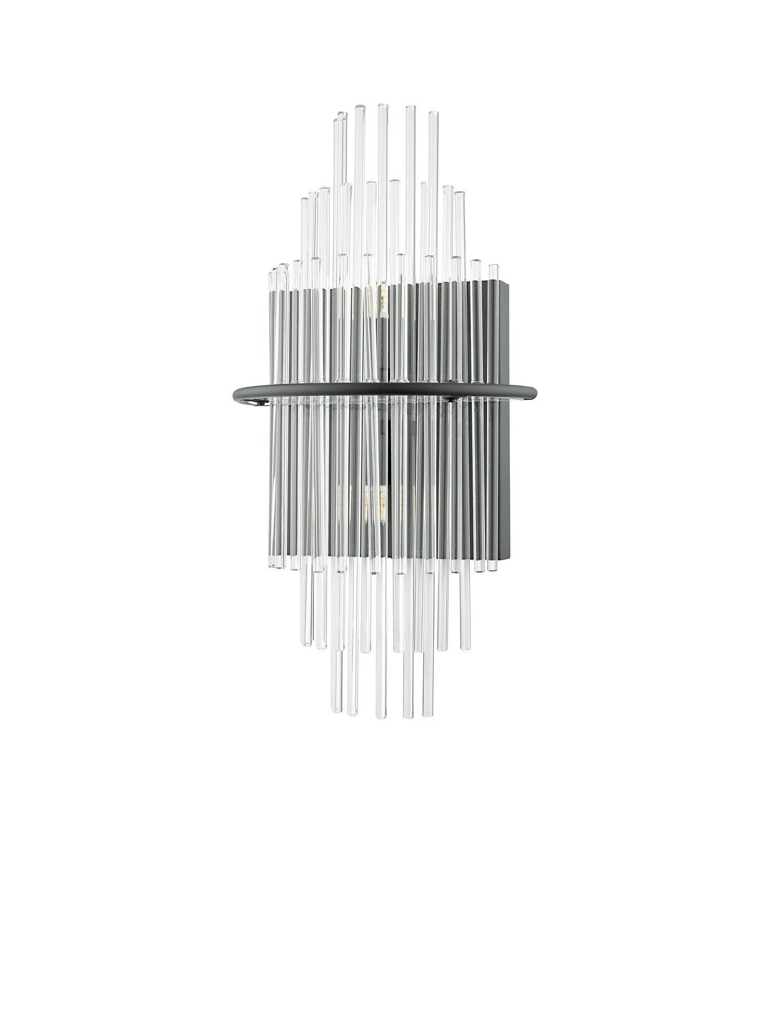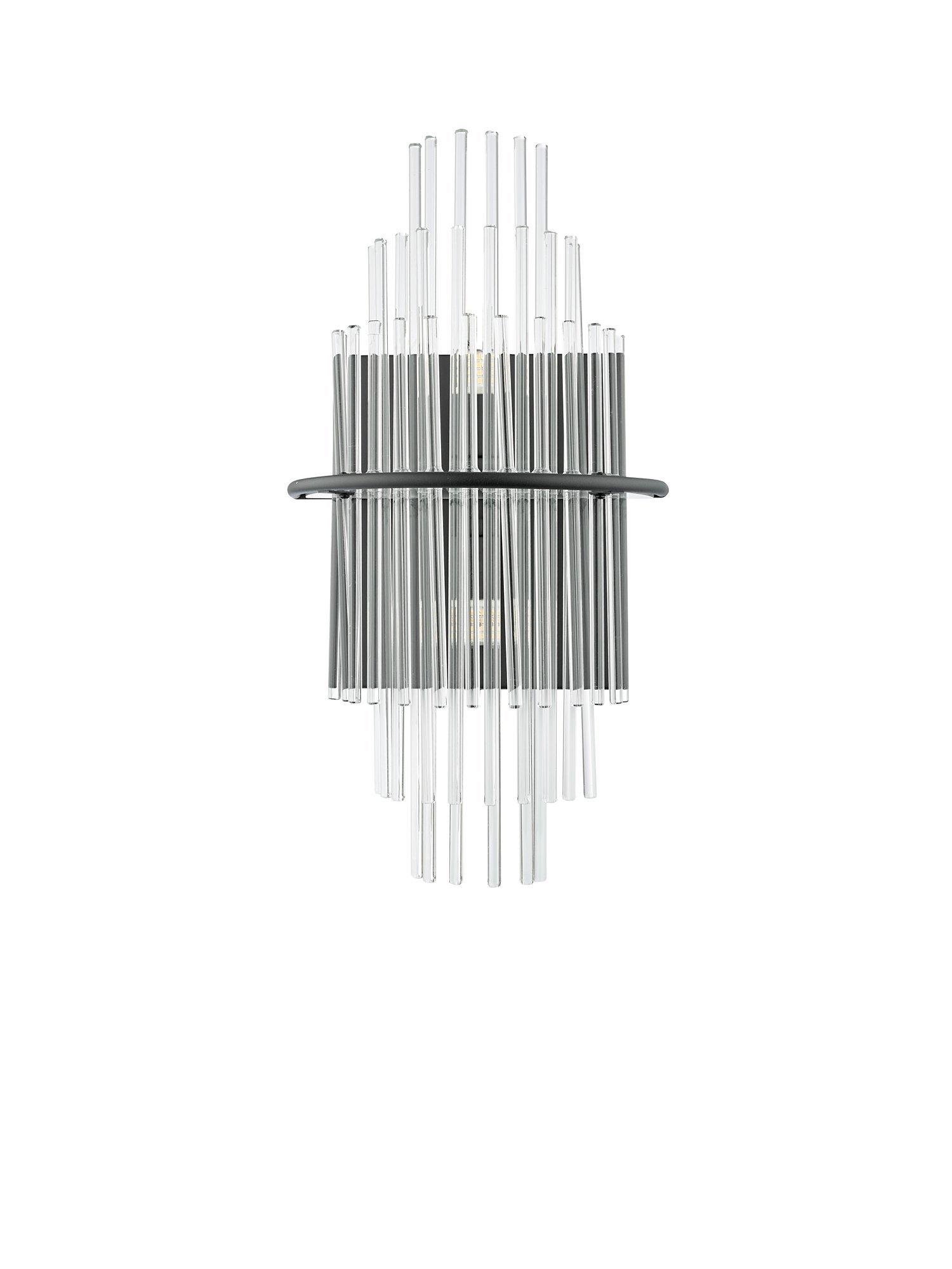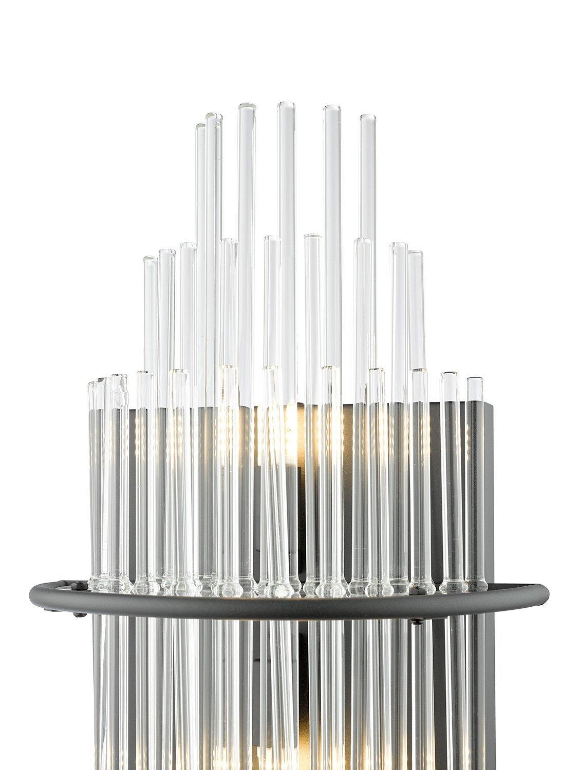 The Lukas wall light consists of glass rods, arranged into two tiers, which appear to float from a central metal band. Works well as a statement wall light, offering tasteful illumination while infusing a touch of Art-Deco style into your decor.