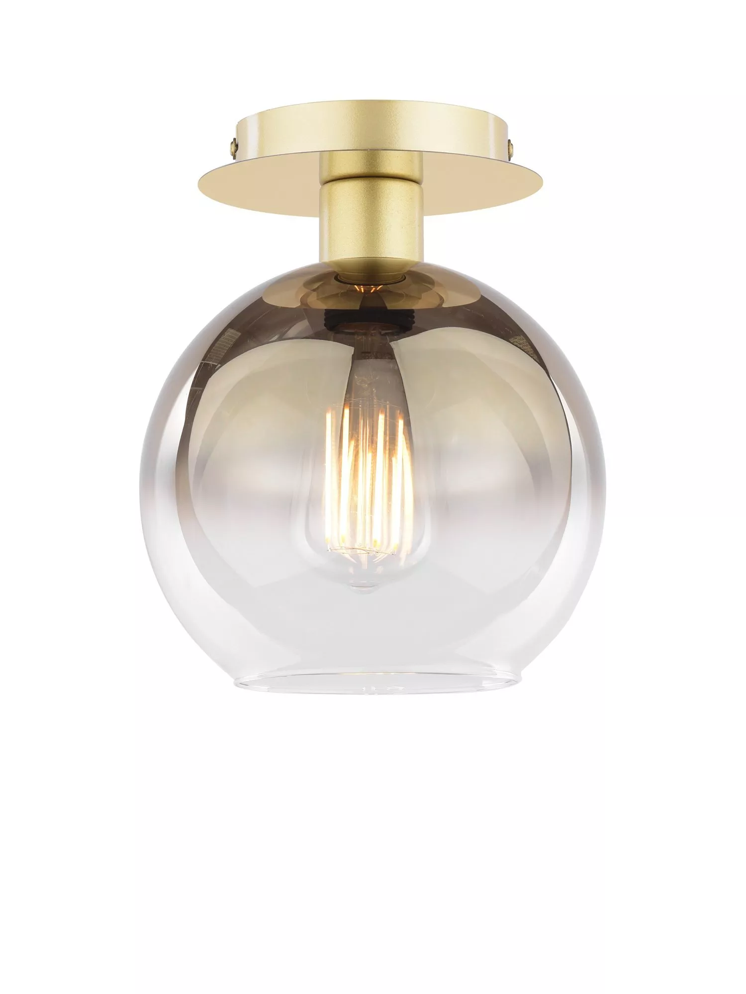 The Lycia is a semi-flush ceiling light with a mirrored top plate and ombre glass globe. This simple modern light effortlessly integrates into any space, offering tasteful illumination while infusing a touch of contemporary style into your decor.
