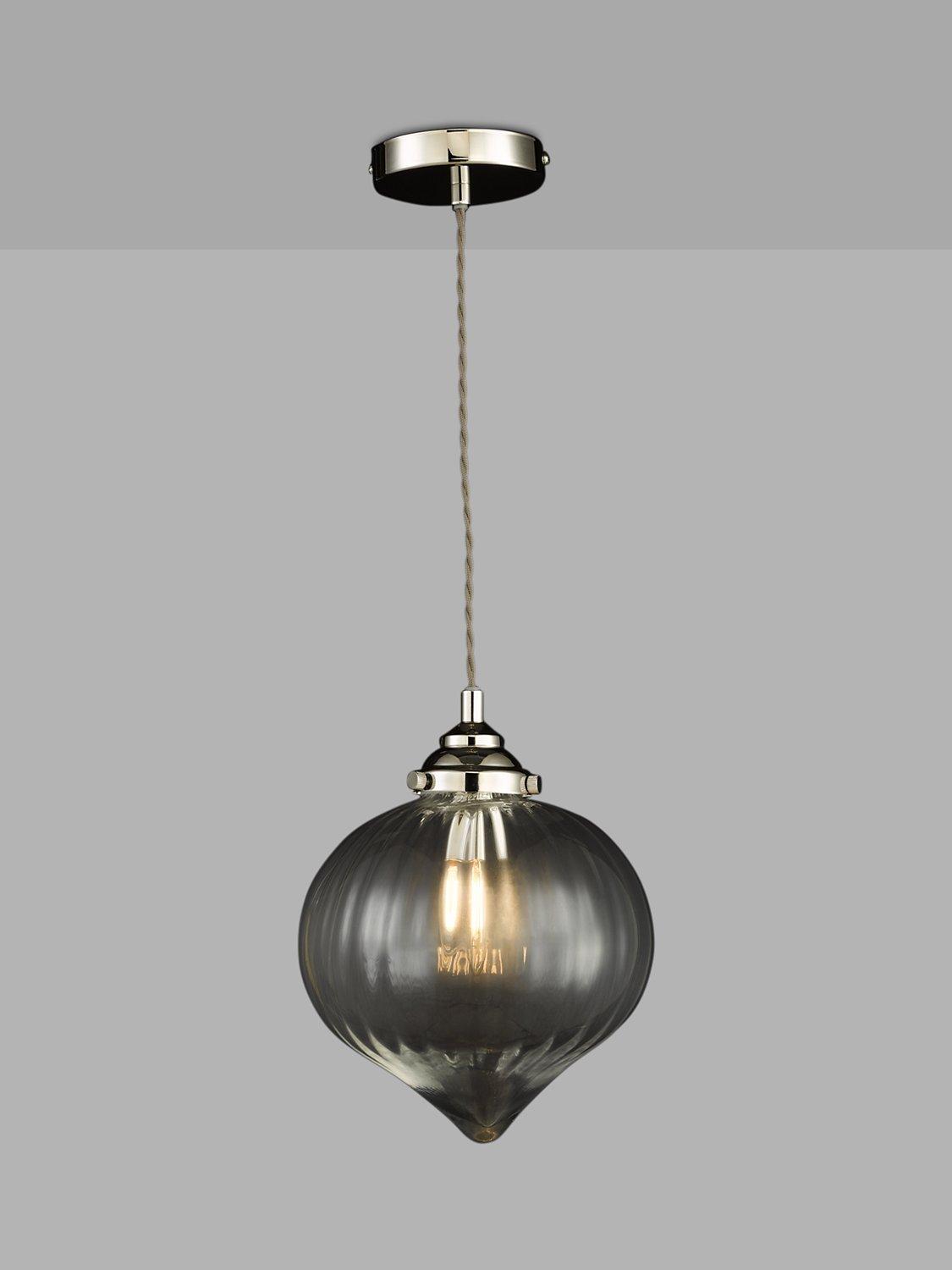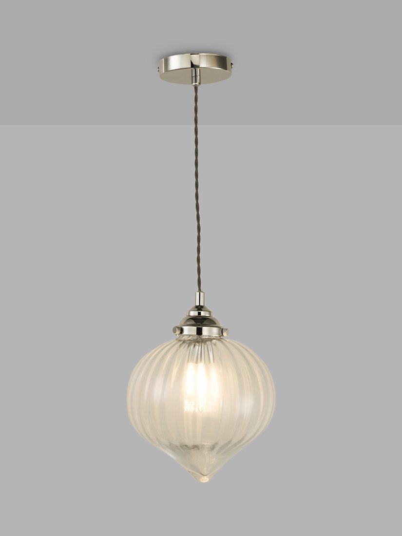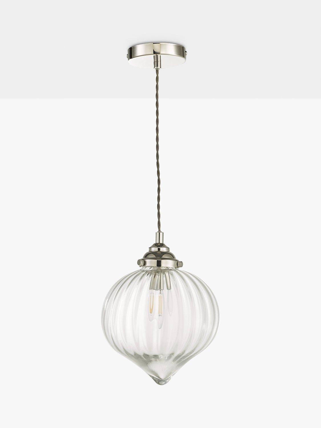 In a delicate teardrop shape, this pendant is made from mouth-blown glass with soft, waterfall ribbing that gently diffuses the light. It's suspended from a height-adjustable cable and decorated with metal detail which adds a soft, industrial edge. We think it will work brilliantly directly over a dining table or breakfast bar, and you can also try it in a set of three for a more considered style.