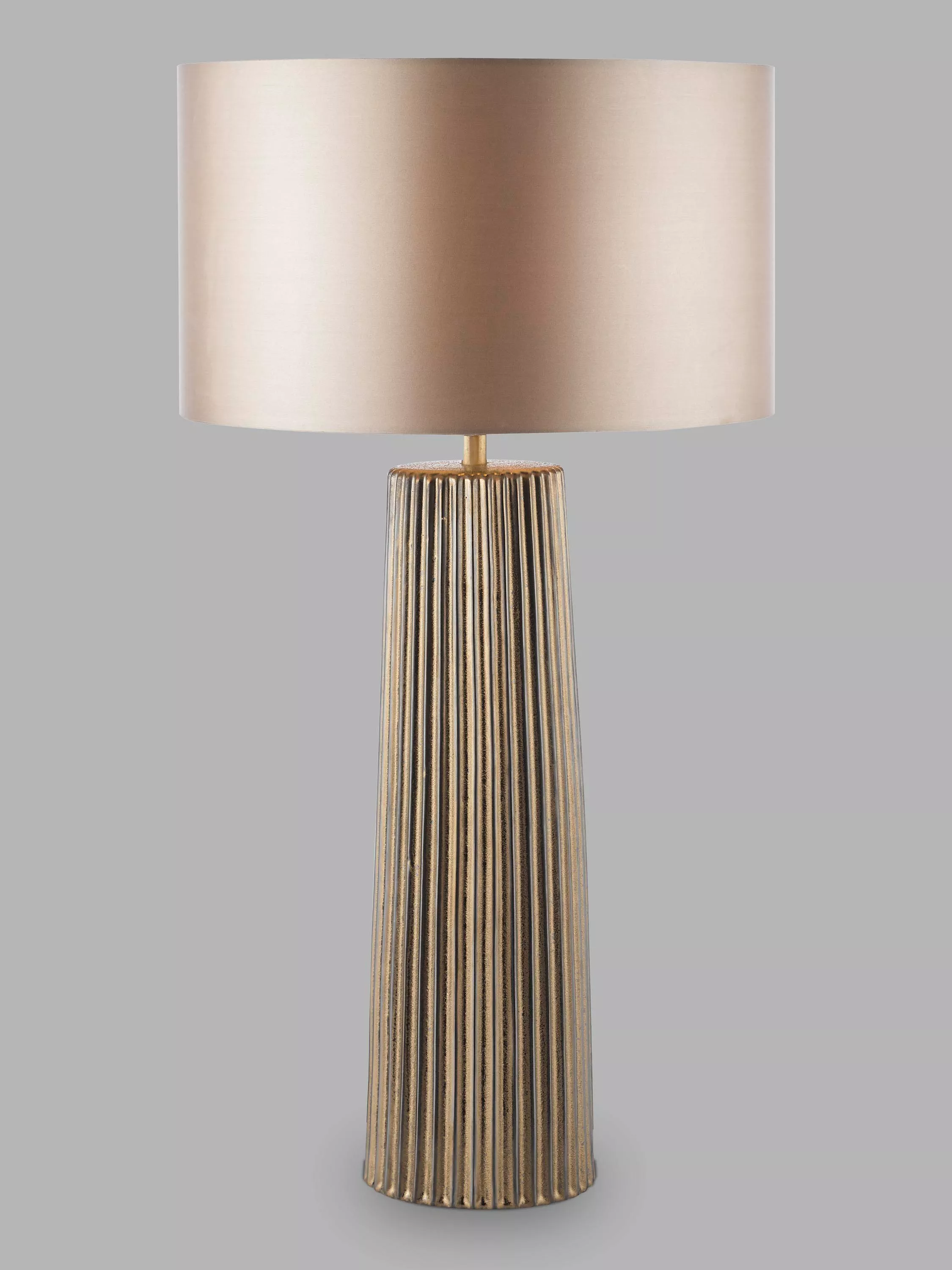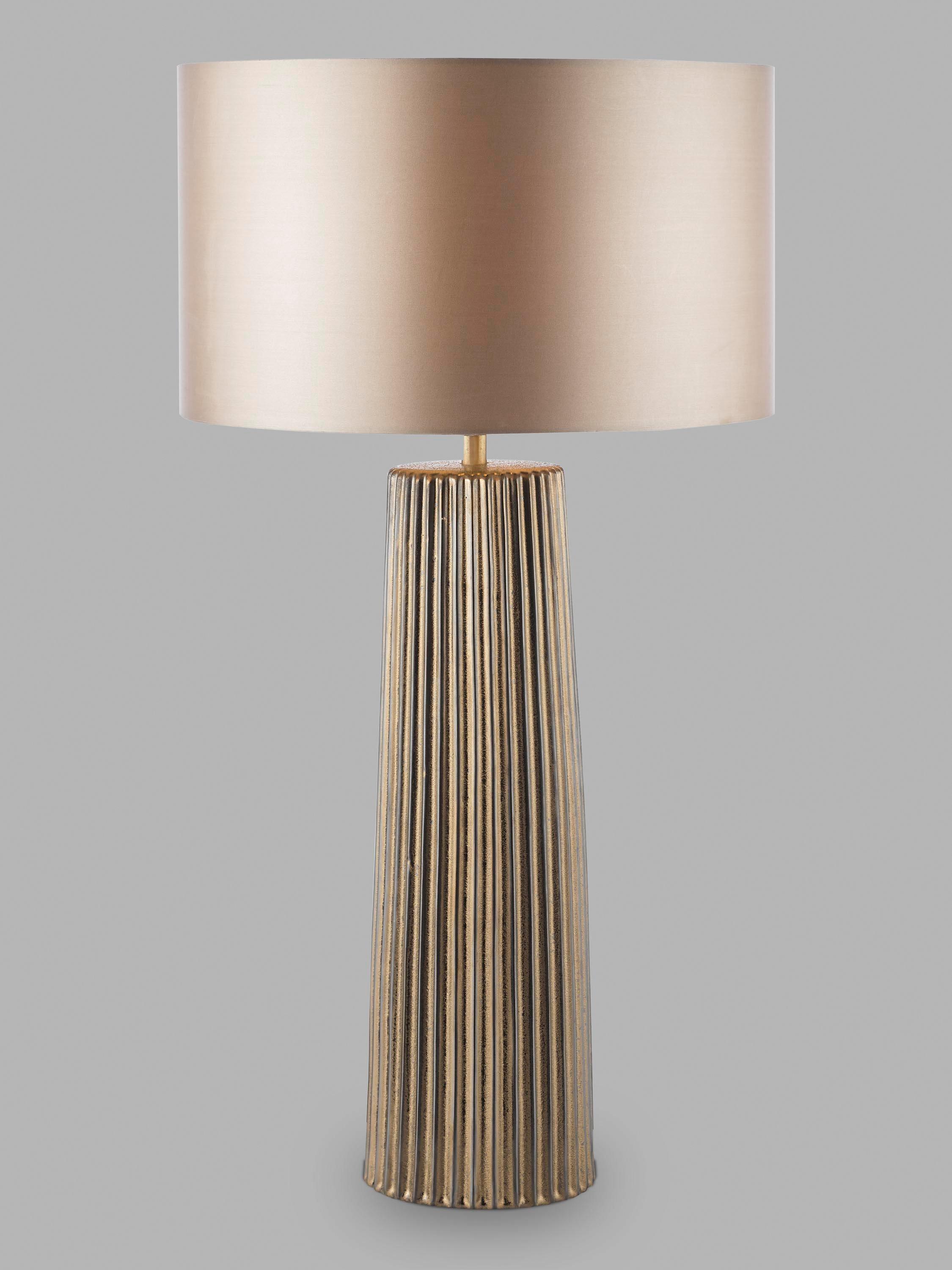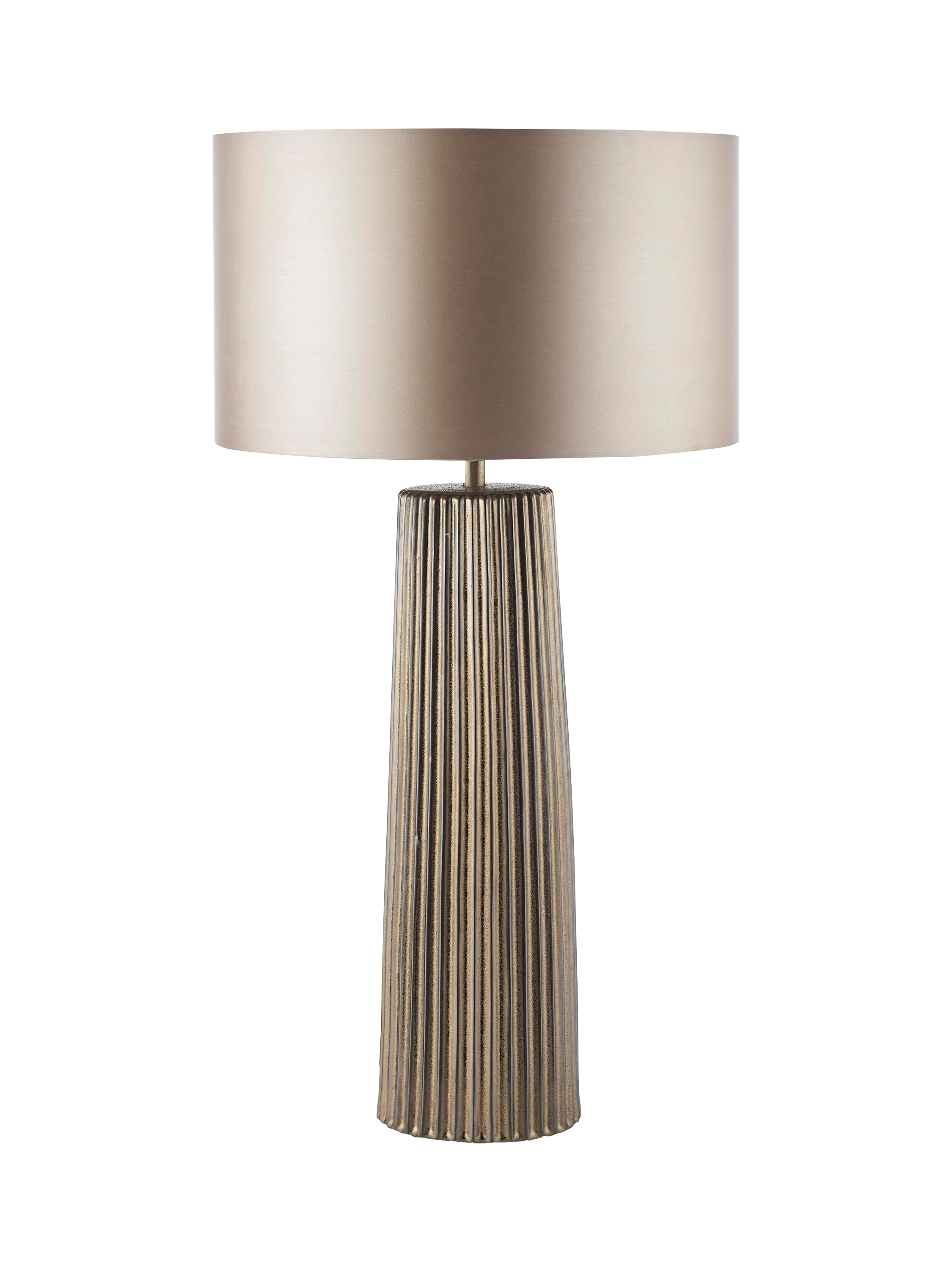 Make a bold statement with the Myla table lamp and its extra-large ceramic base. Boasting a striking ribbed texture, it's sure to catch the eye whether placed in your lounge or hallway.