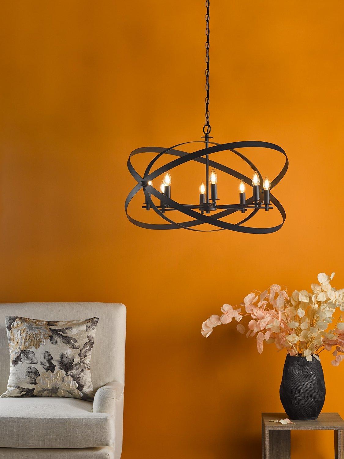 The Nitya ceiling light is a fine example of refined industrial style. Showcasing sweeping metal work around an elegantly simple eight bulb light fitting. The Nitya is height adjustable at the point of installation.