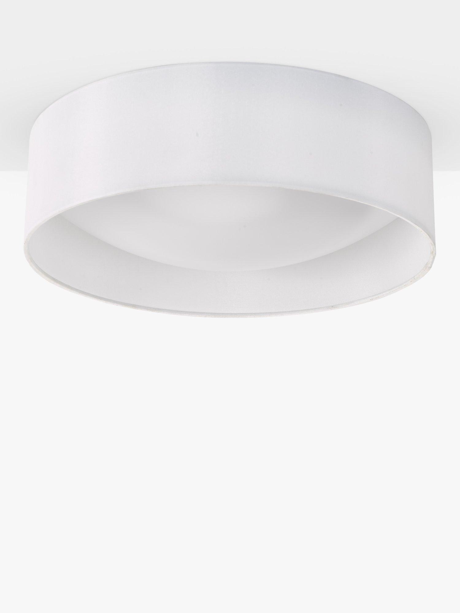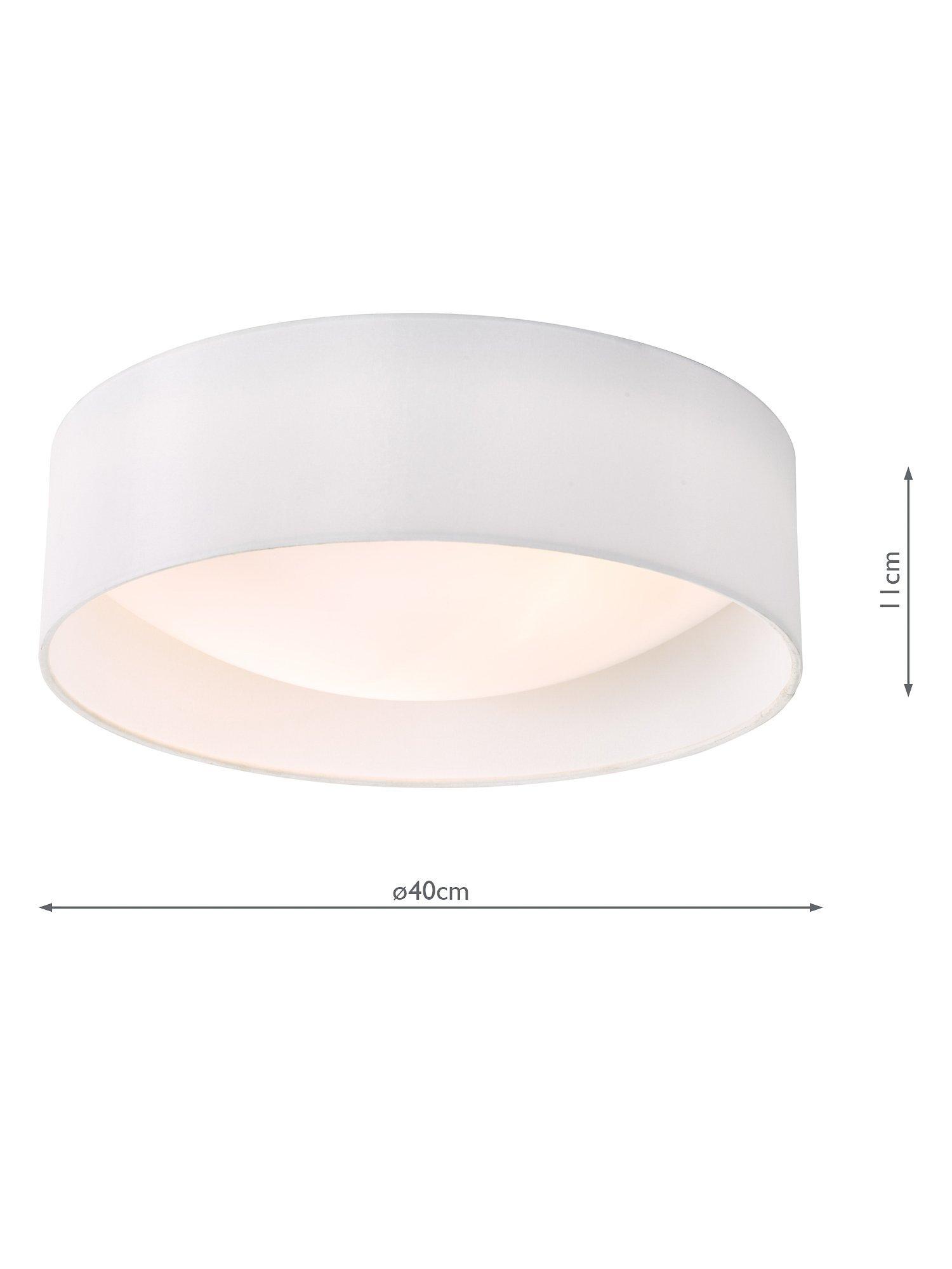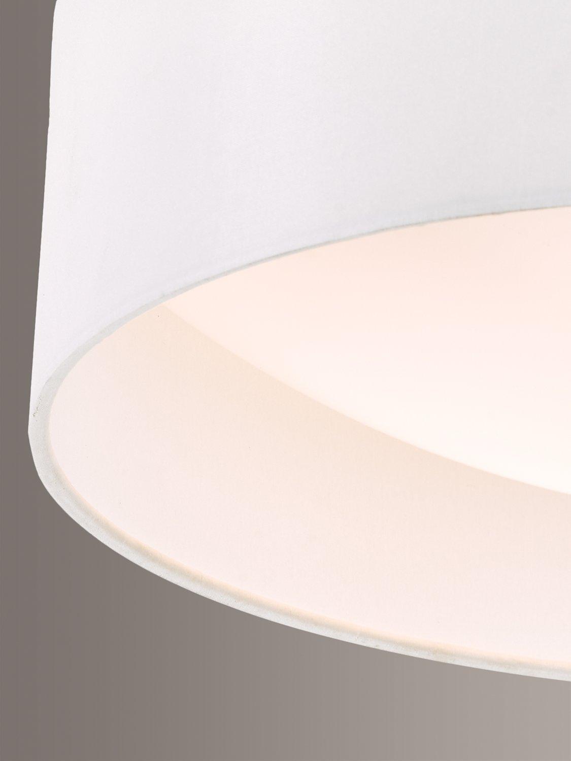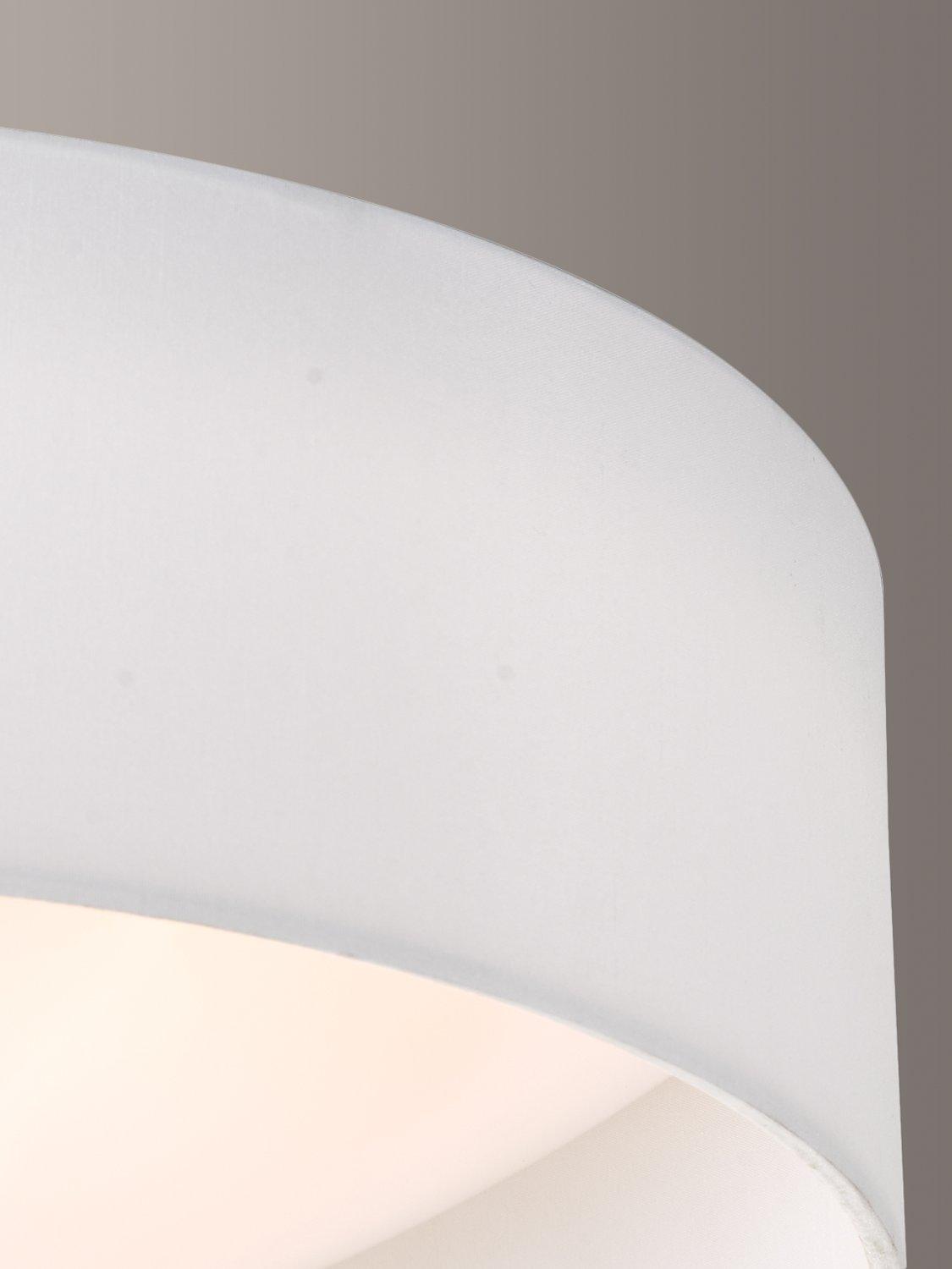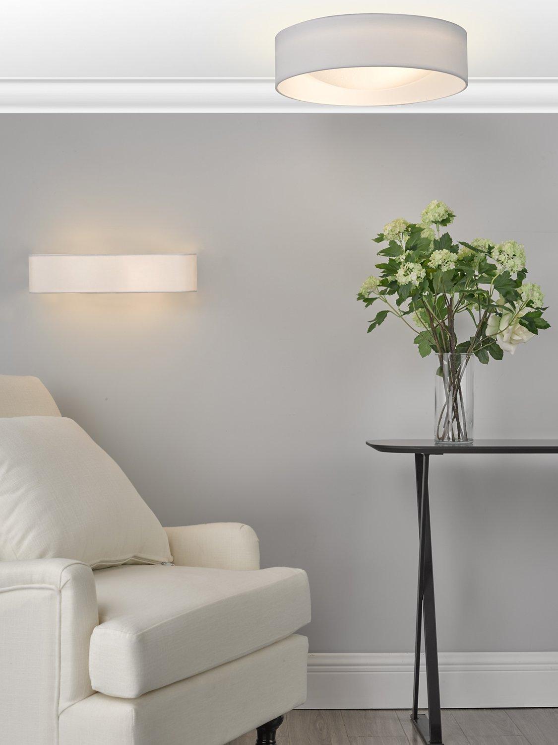 Nysa features a faux silk shade and polycarbonate diffuser for a bright, even, non-glare light and a softer look, making it suitable for hallways, living rooms or even bedrooms. It's semi-flush fitting makes it ideal for low ceilings.