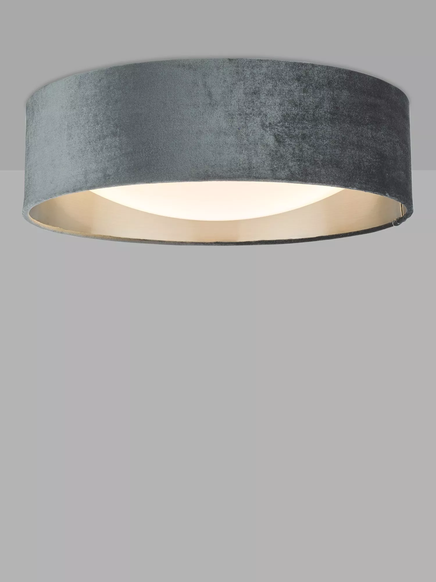 Thanks to the addition of a polycarbonate diffuser, this ceiling light offers a warm and beautifully even spread of light, without harmful glare. The shade is made from luxe velvet with a metallic lining inside which also enhances the glow. Available in this medium size, two LED bulbs are required and as it's a flush fitting, this light is especially useful if space is limited or the ceiling light in your room is particularly low. Also available in a larger size.