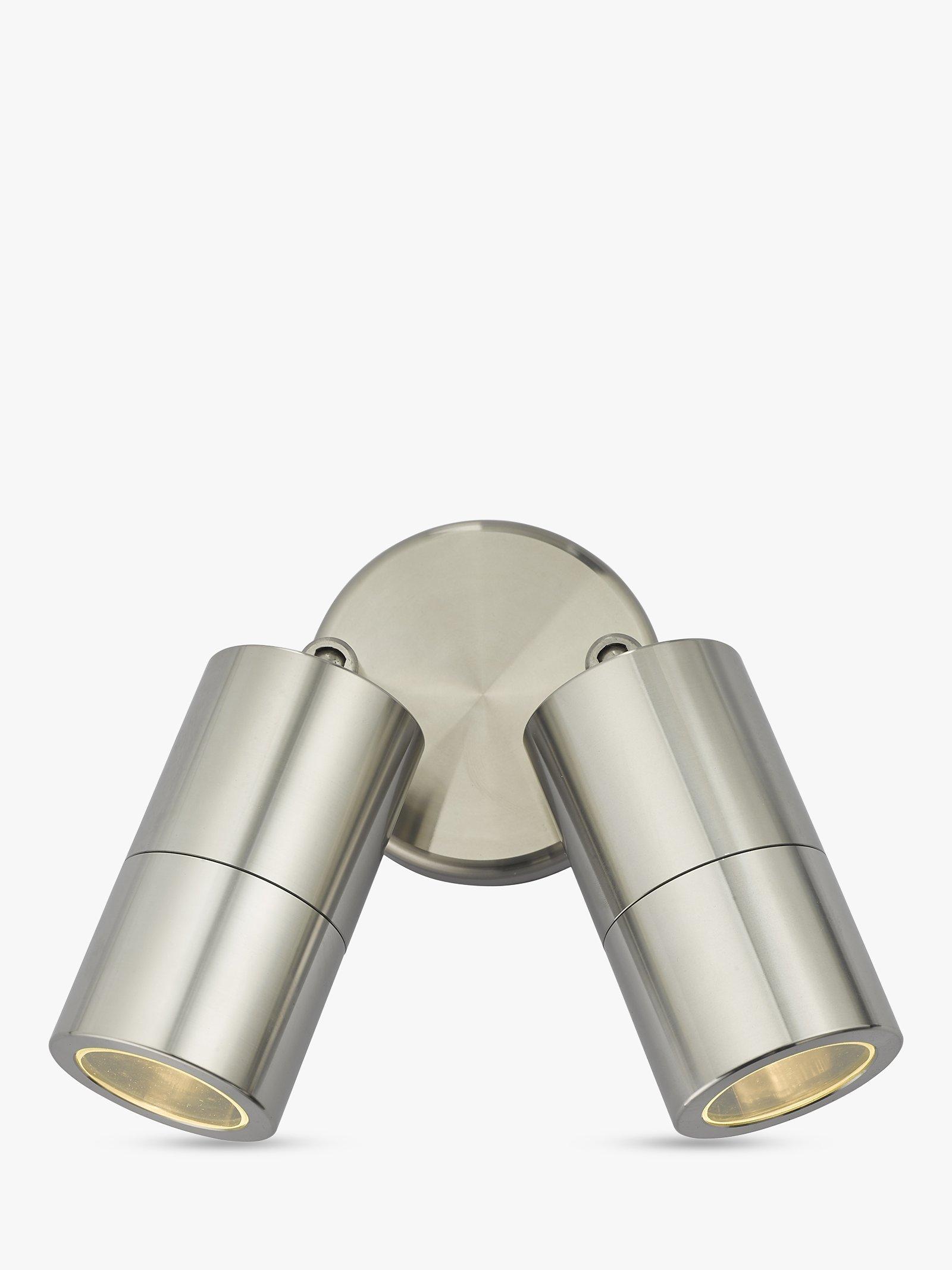 This double outdoor wall light is supplied with two replaceable LED bulbs. It's made from a solid aluminium cylinder and features adjustable heads so you can cast light exactly where you need it. The IP65 rating ensures its resistance to moisture and dust outdoors.