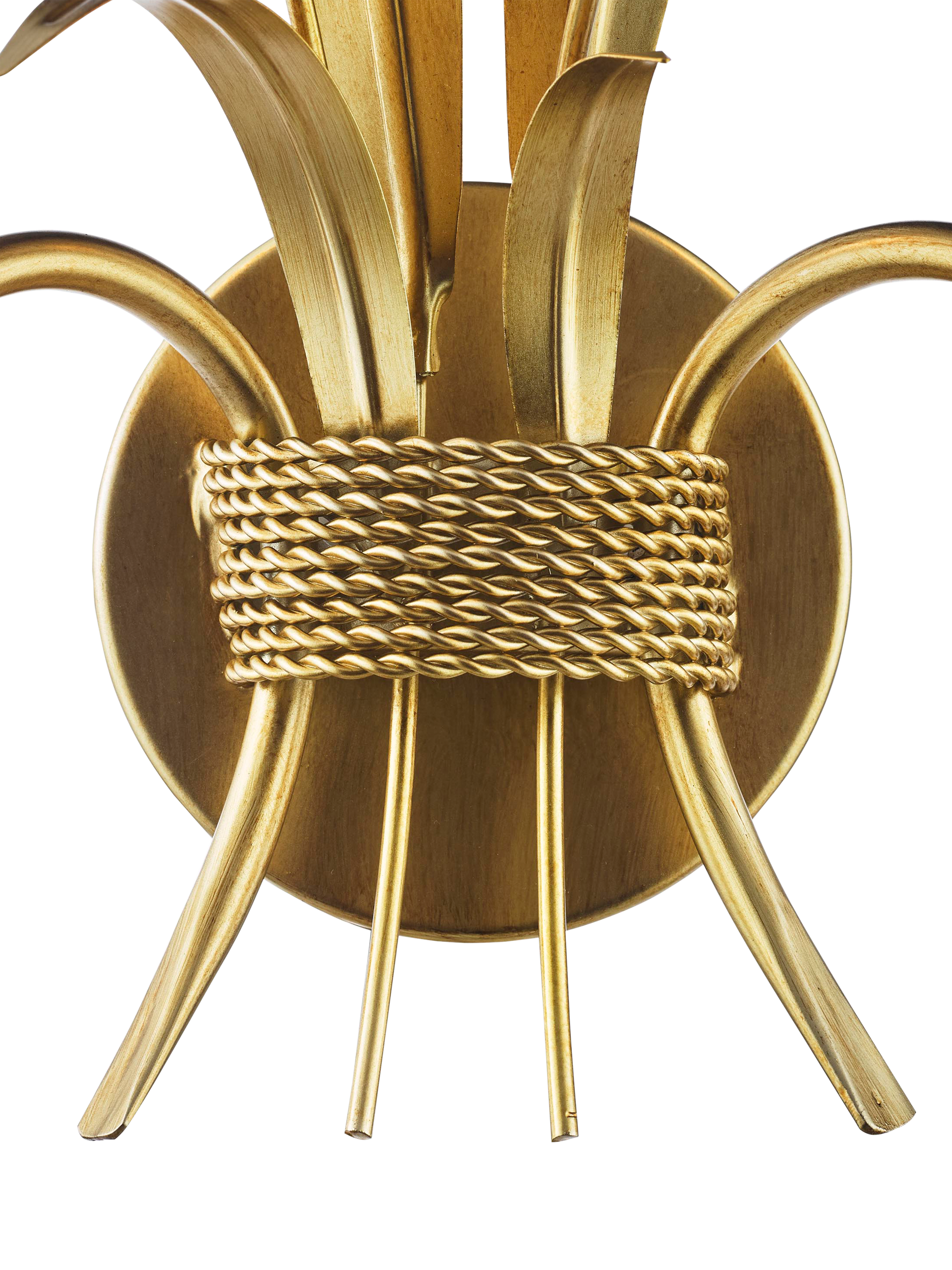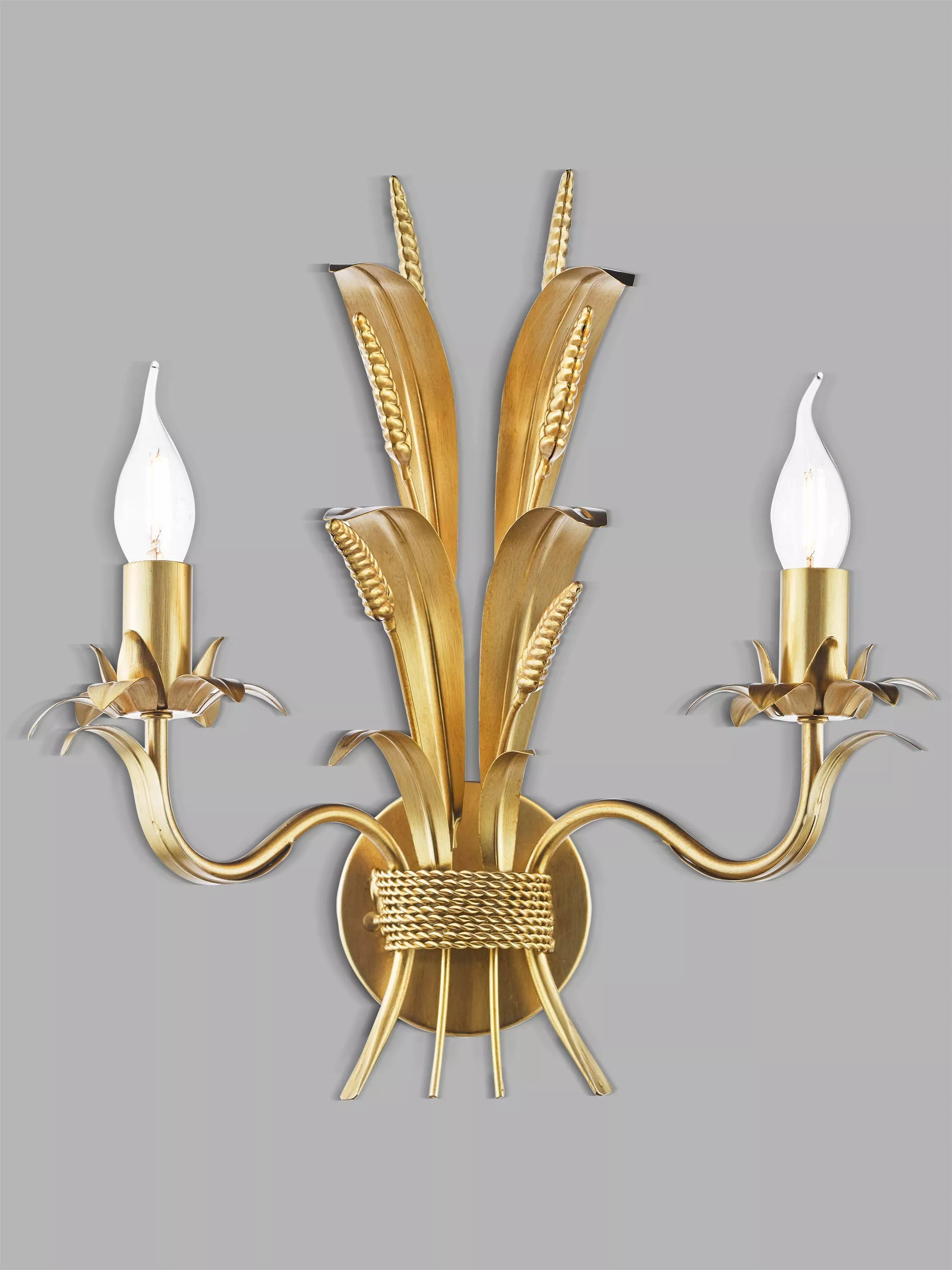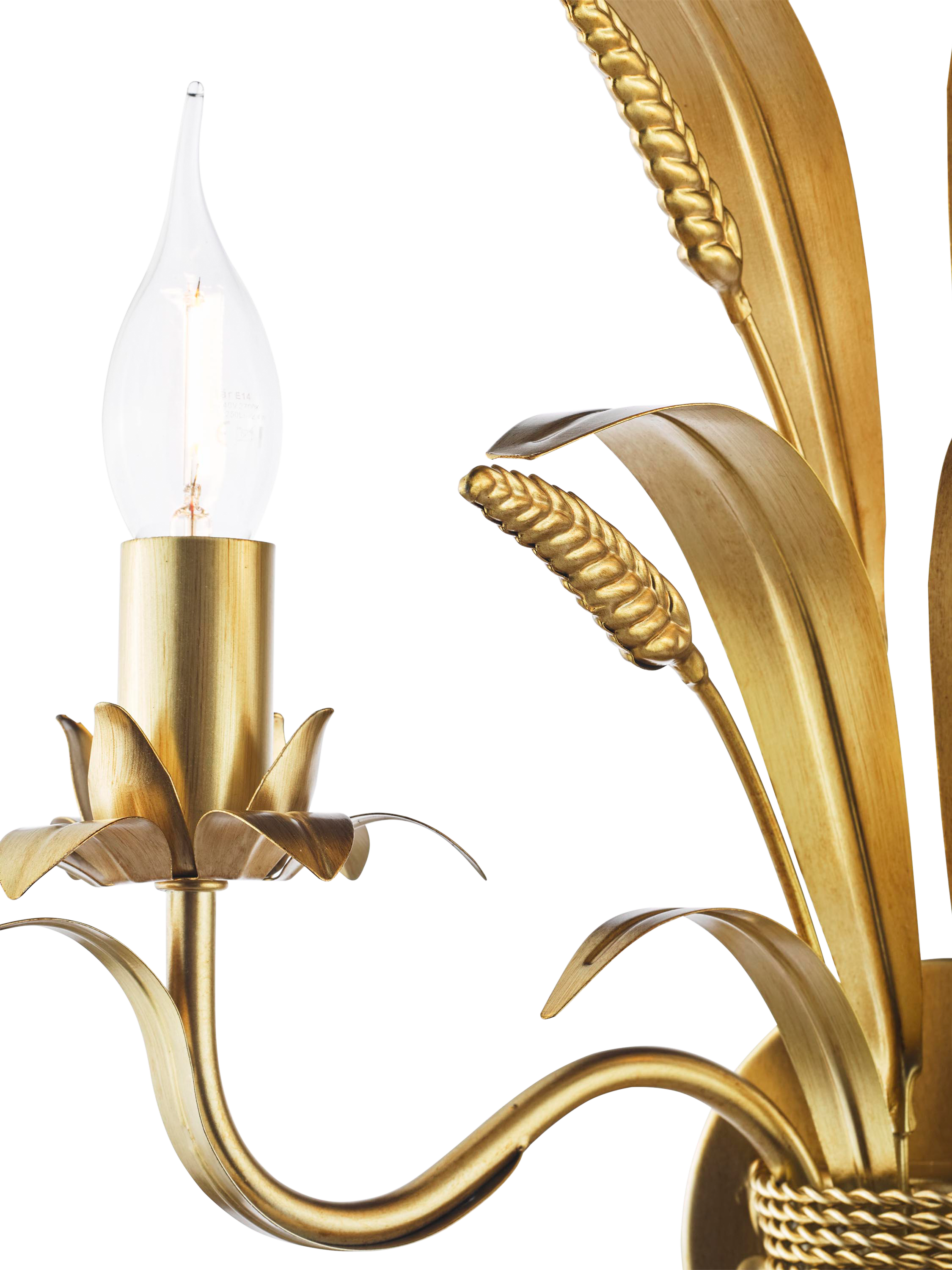 Bring a touch of Italian elegance to your home with the Phaedra 2 Lamp Wall Light. This stunning gold-toned wall light features hand-applied wheatsheafs and leaves, drawing inspiration from classic Italian toile lighting. The painted gold-effect finish adds a luxurious sheen, making it a captivating focal point in any room.