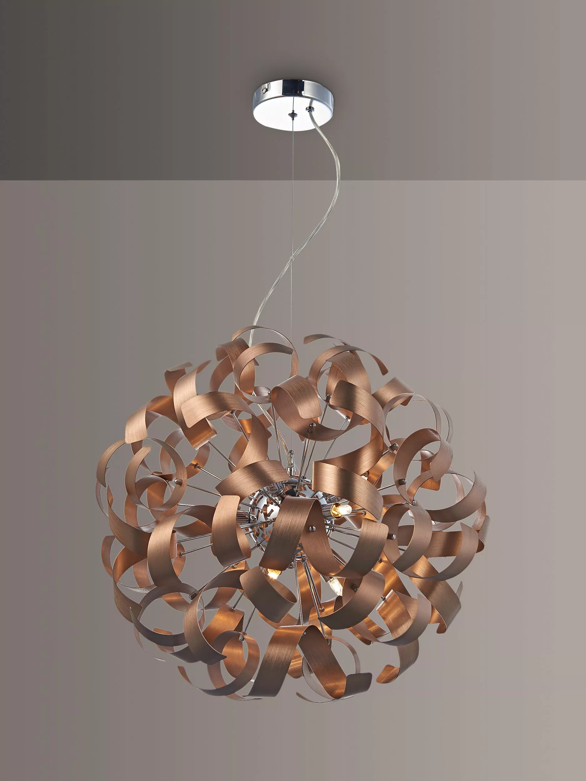 Formed from metal ribbons in a twirling shape, this sculpted ceiling light houses nine individual bulbs to cast light around your room. It's an elegant and decorative style which is height-adjustable at the point of installation.