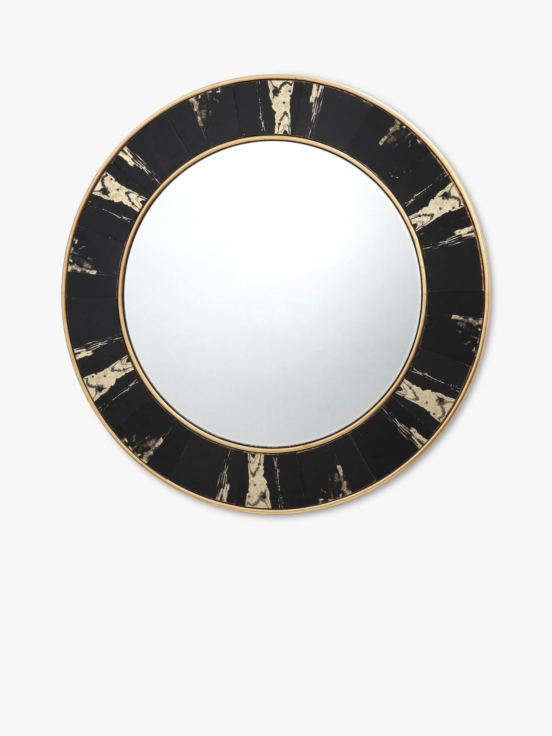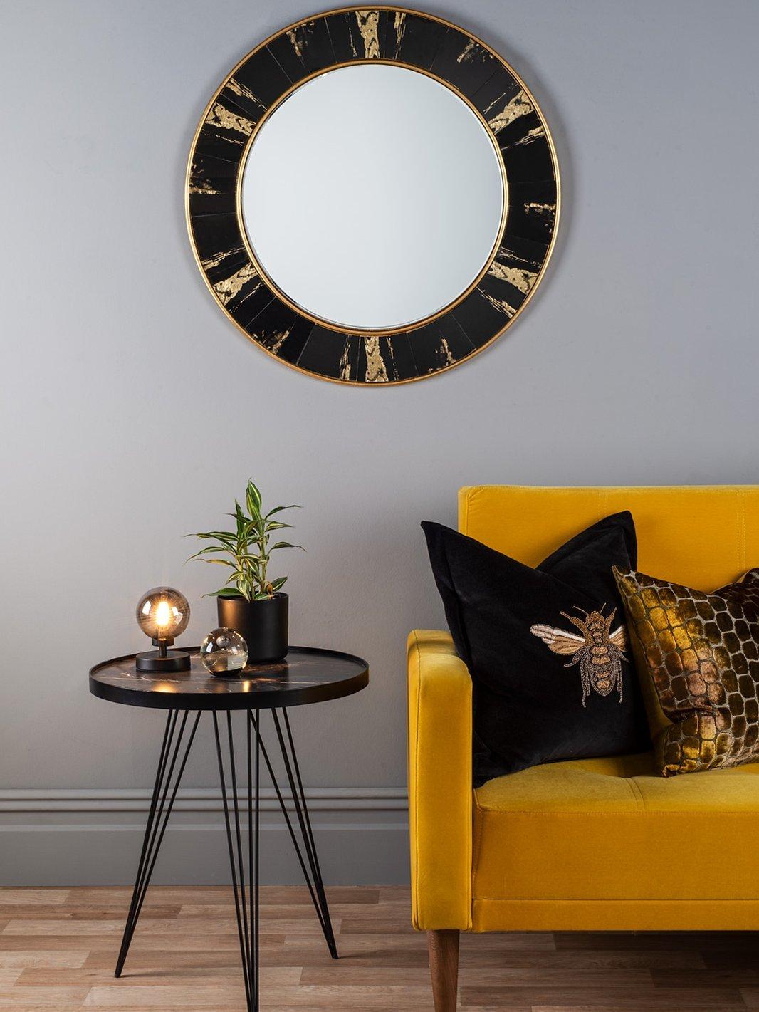An opulent design, the Sidone mirror from Där features an abstract frame edged in gold foil. This round mirror is ready to hang on your wall using the fittings on the back.