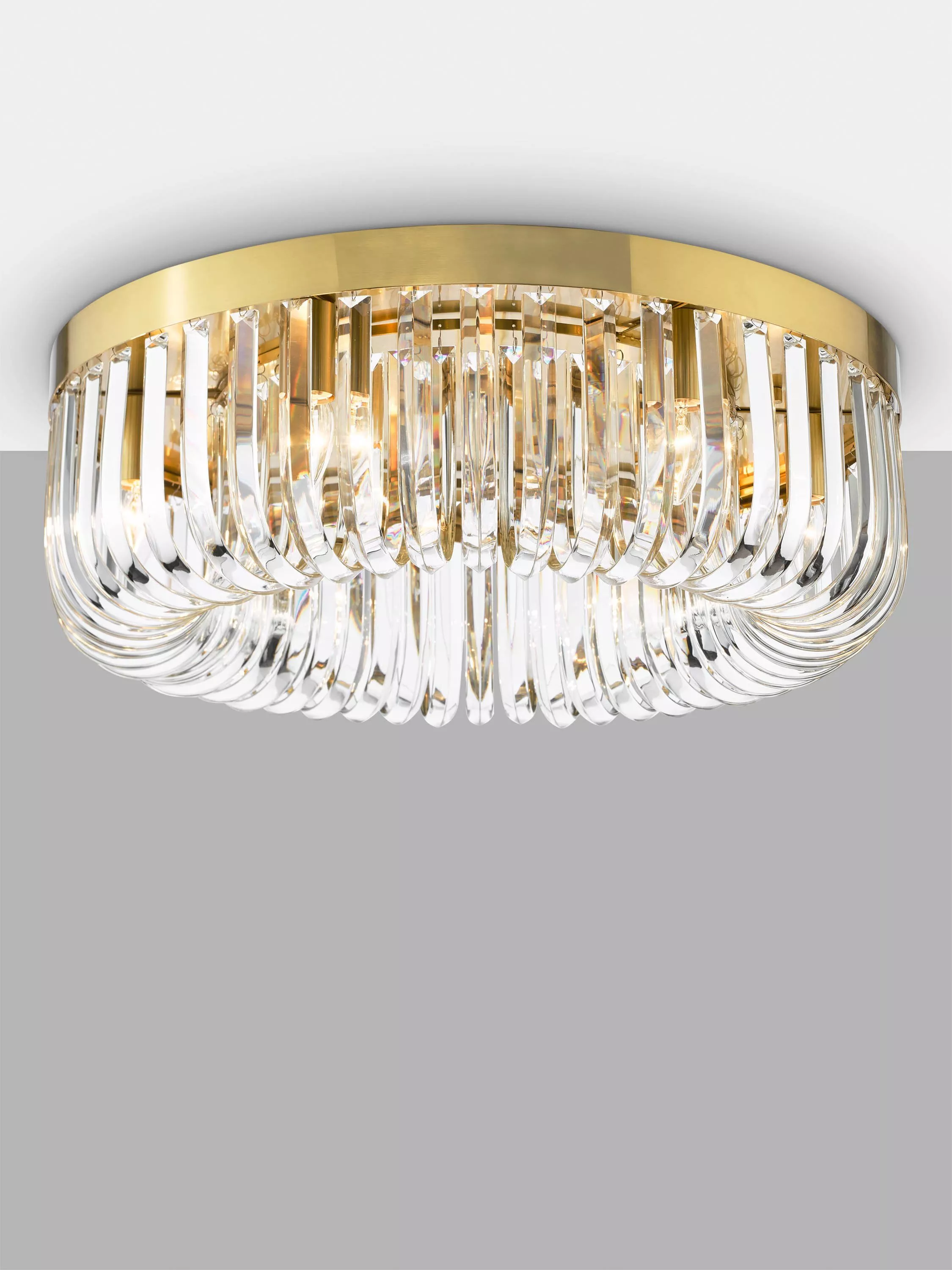 Elevate your space with the Sigourney Crystal Flush Ceiling Light. This luxurious fixture features the brilliance of crystal, creating a stunning focal point for any room. The flush-mount design keeps the light close to the ceiling, making it ideal for spaces with lower headroom.