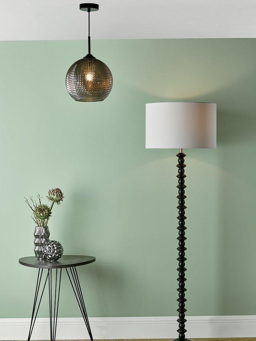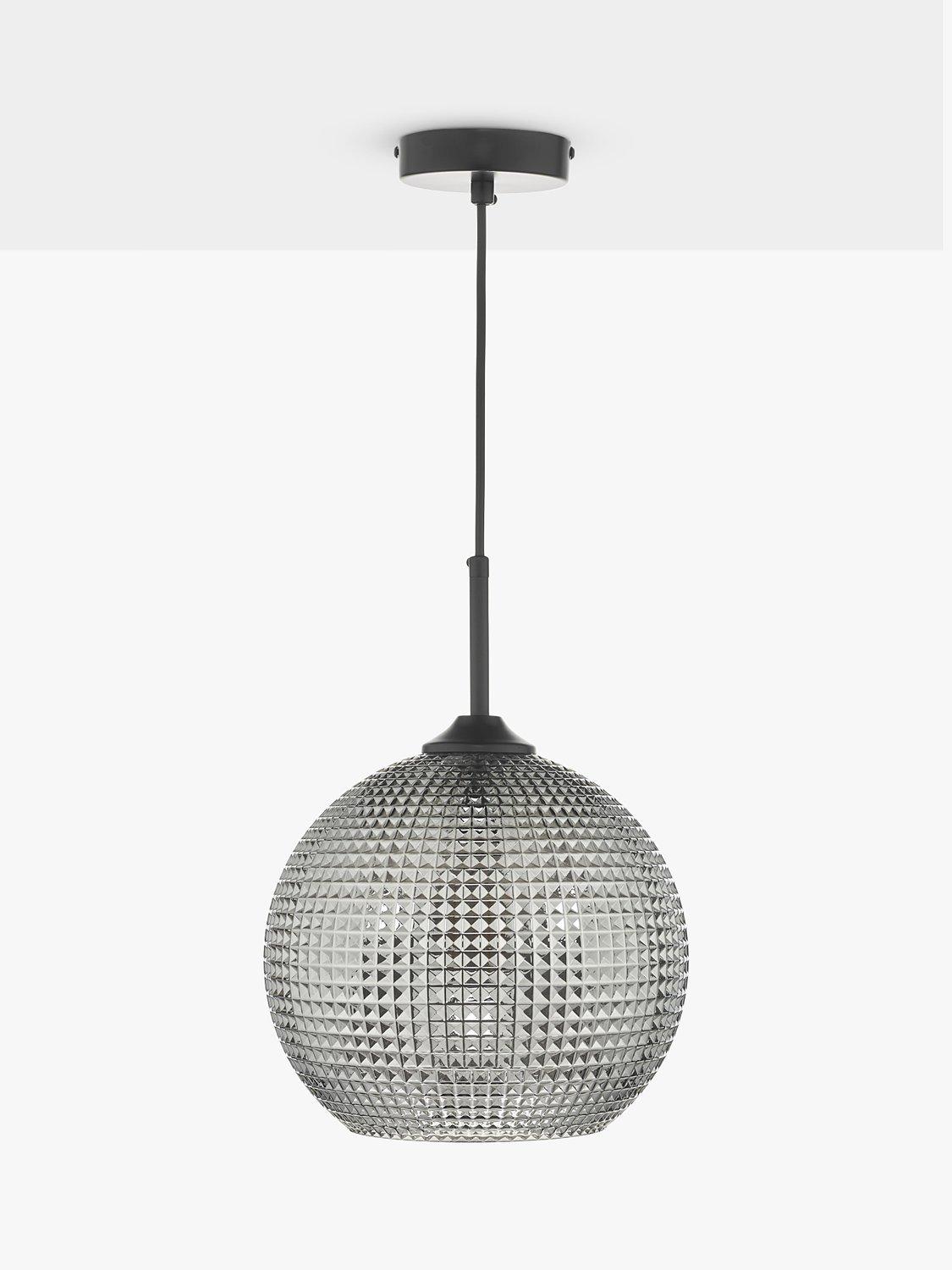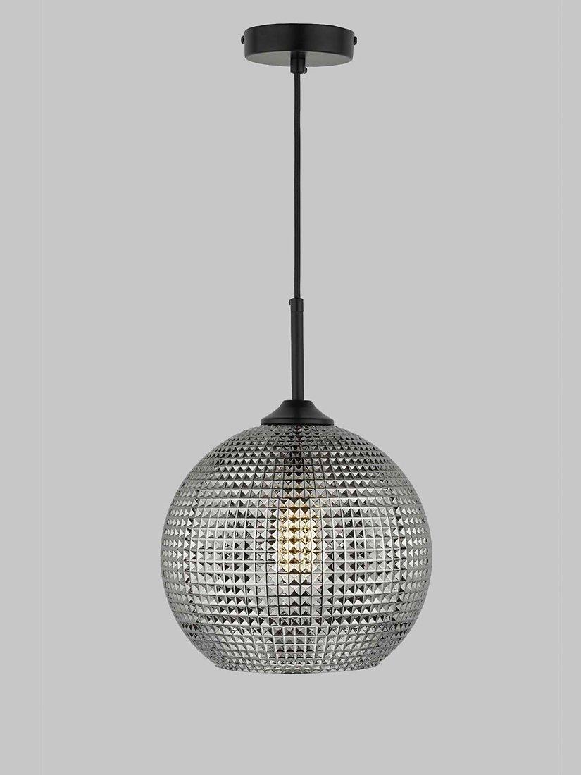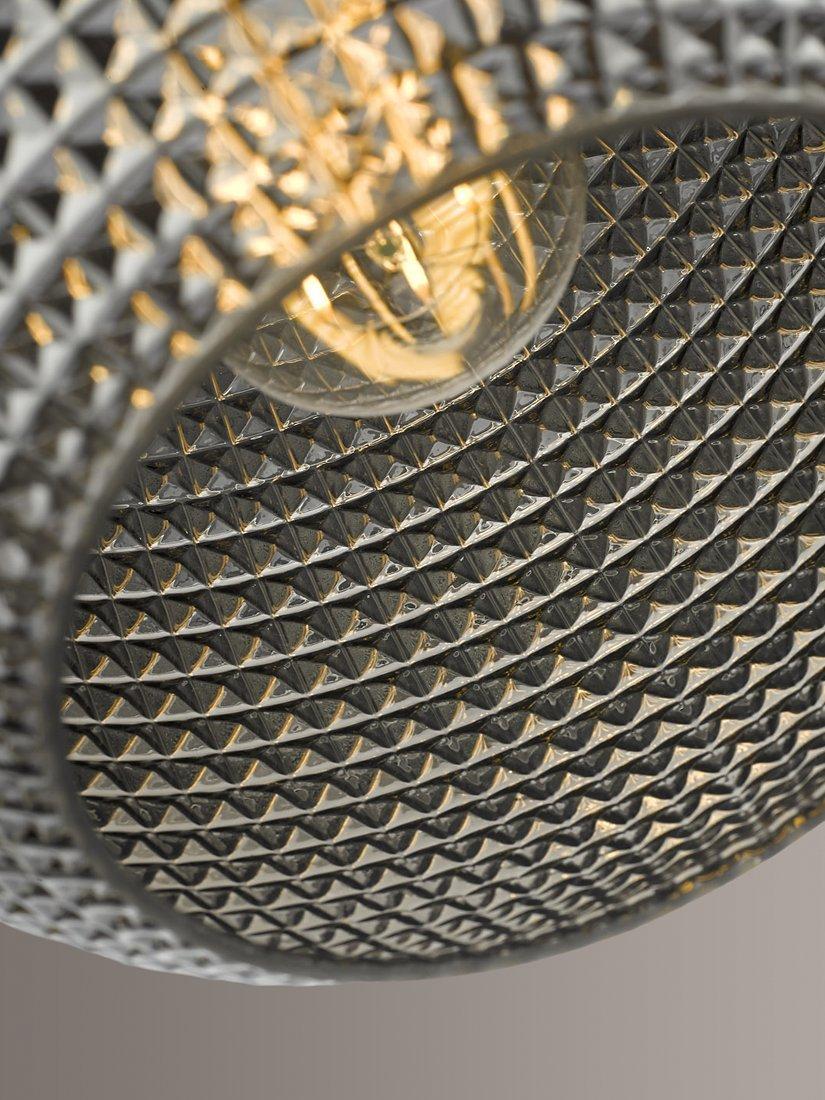 Made with a textured glass pendant, this dome-shaped ceiling light offers an ambient glow of light. It's suspended from a height-adjustable fabric cable and its smoked finish gives it a statement edge.
