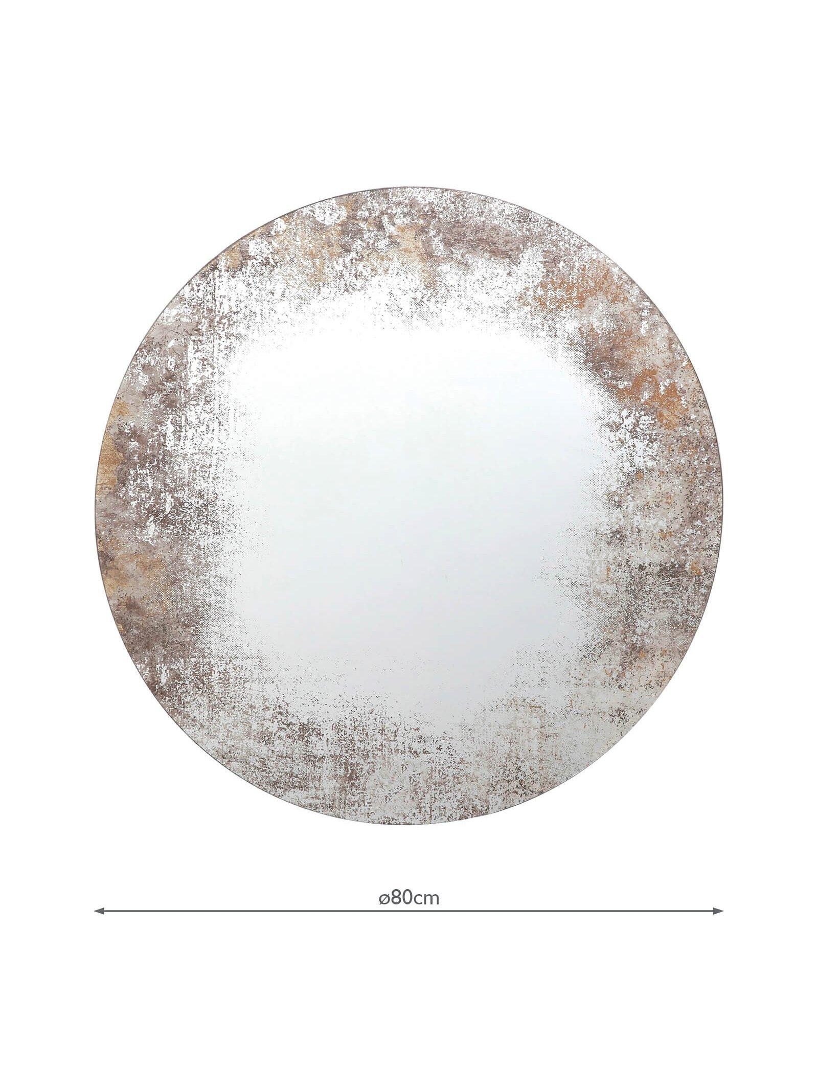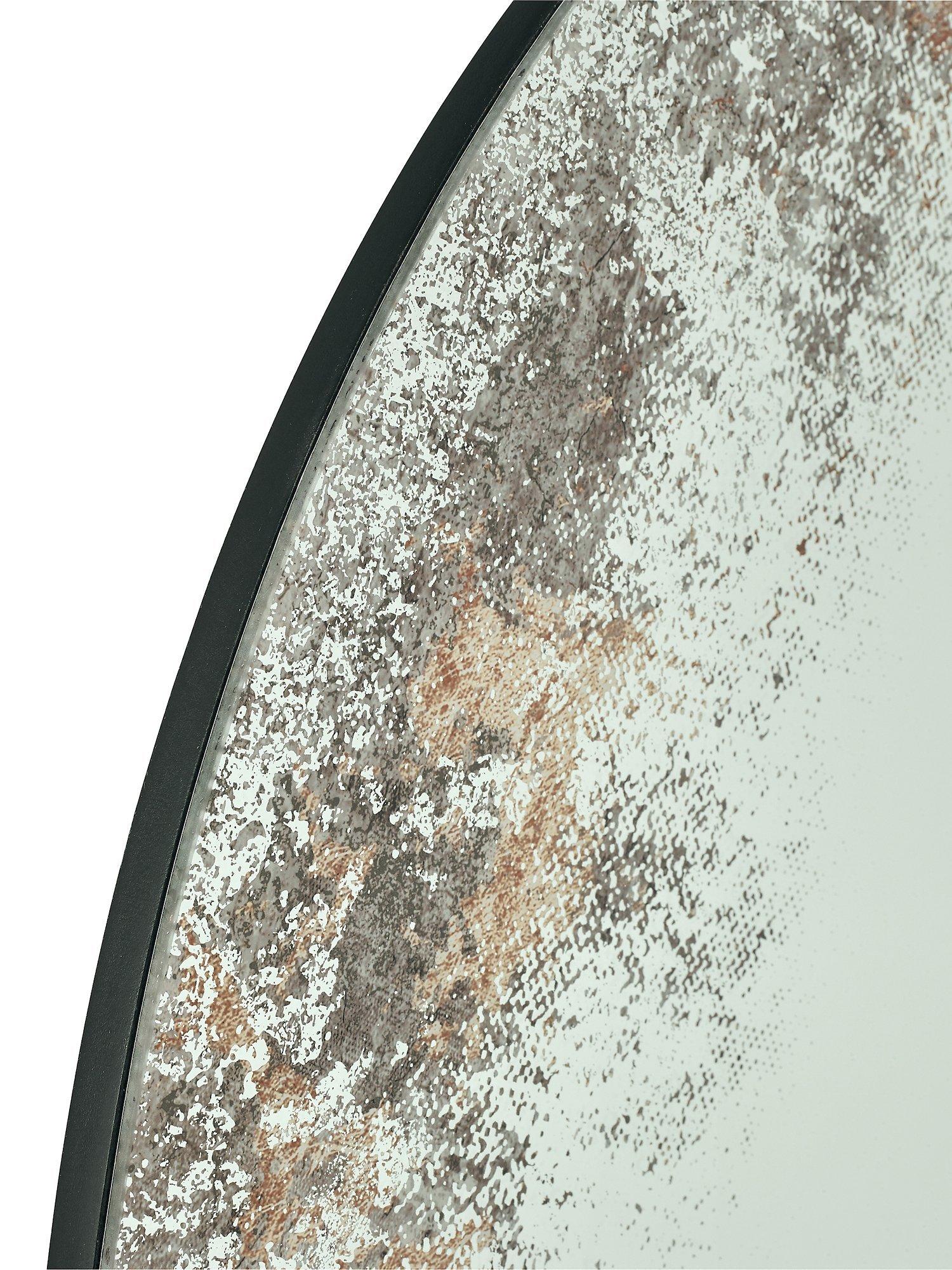A contemporary design, the Vixen mirror from Där has a 'foxed' border on the glass, distressed to create an aged and abstract effect. This round mirror is ready to hang on your wall using the fittings on the back.