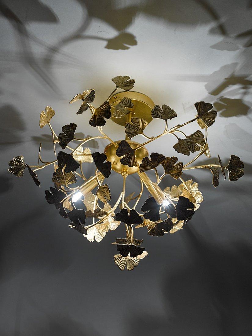 With a flourish of leaves and twisting sprigs, this ceiling light will add a decorative accent to your space. It's made from metal with a hand-applied gold leaf to achieve a distressed finish. Plus, it will spread light around your room as it requires four bulbs in total.