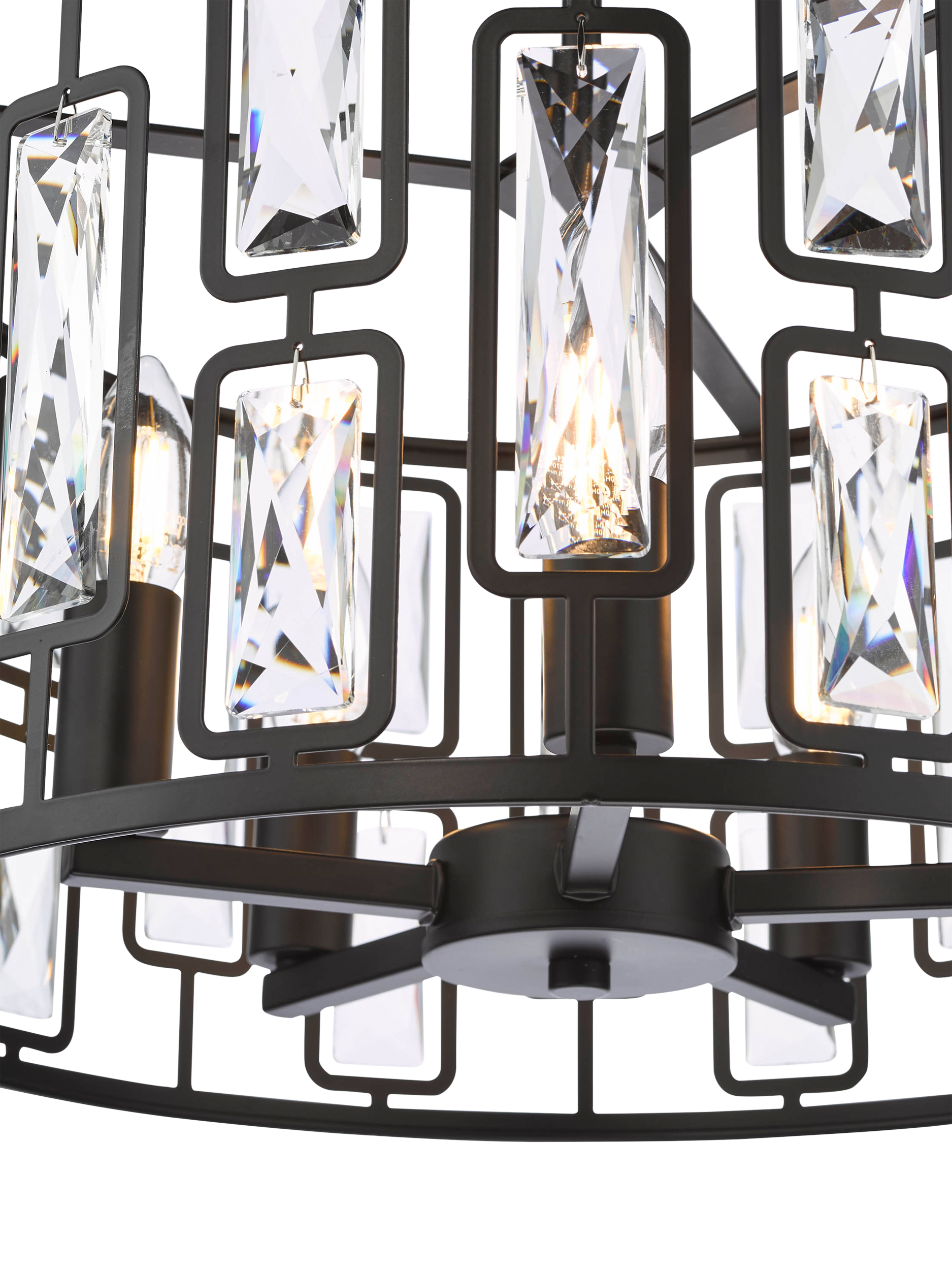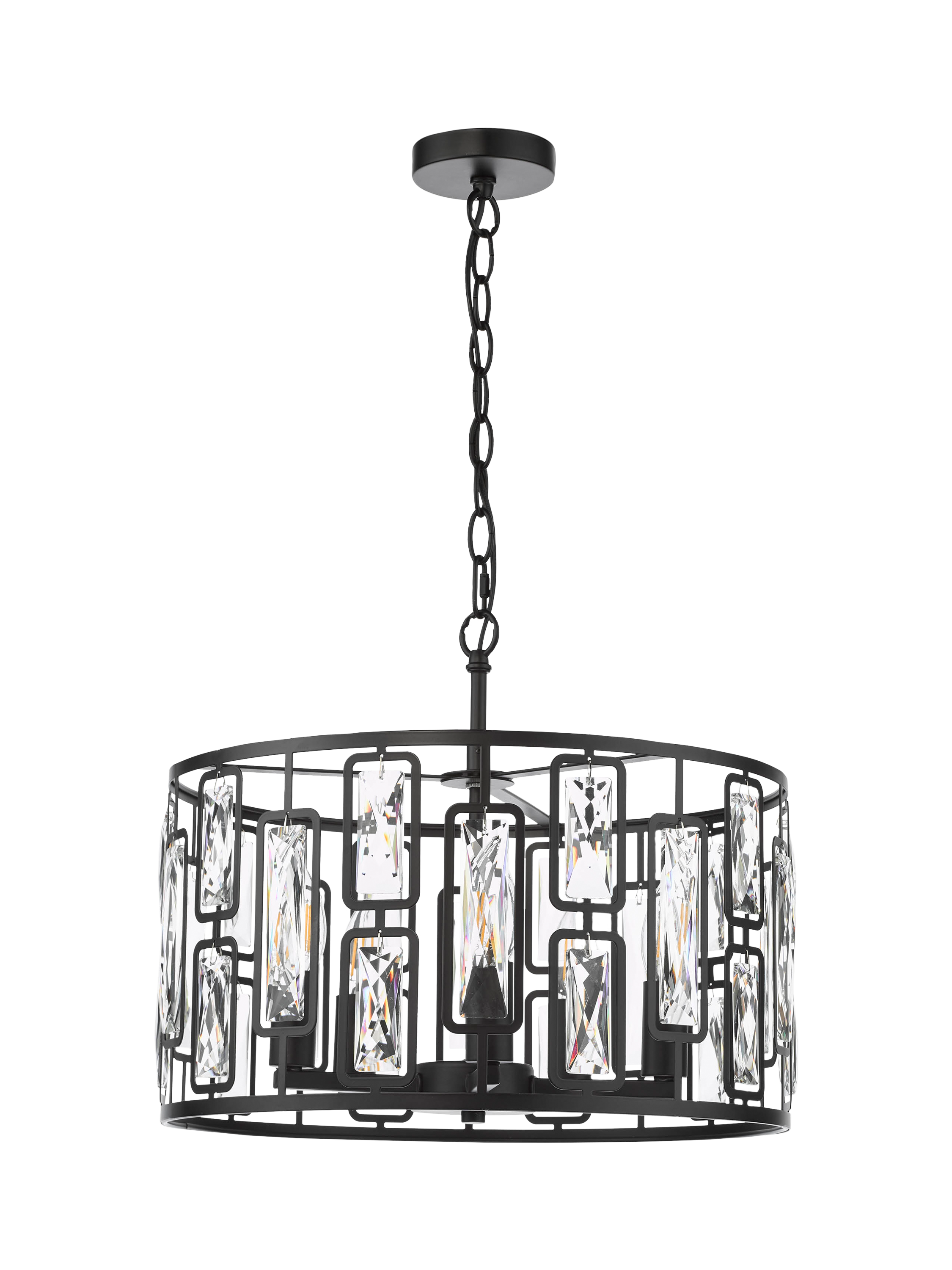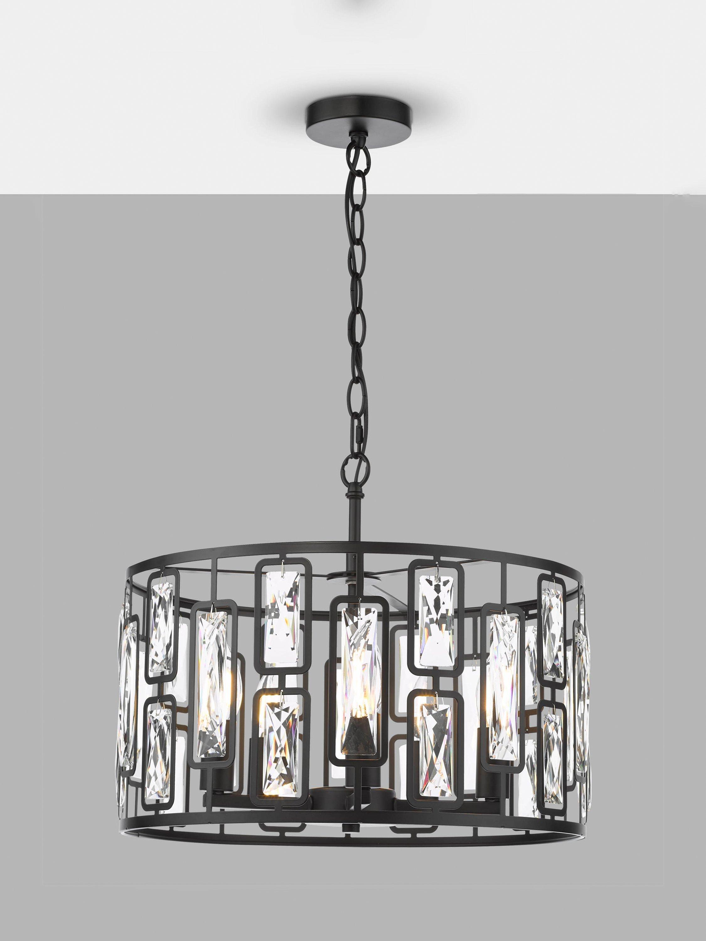 Illuminate your space with contemporary elegance using the Zoelle 5 Light Pendant. This striking pendant combines sleek modernity with timeless glamour, featuring a matt black finish adorned with sparkling crystal accents. The crystal drum style adds a touch of sophistication, making it a stunning focal point for any room.
