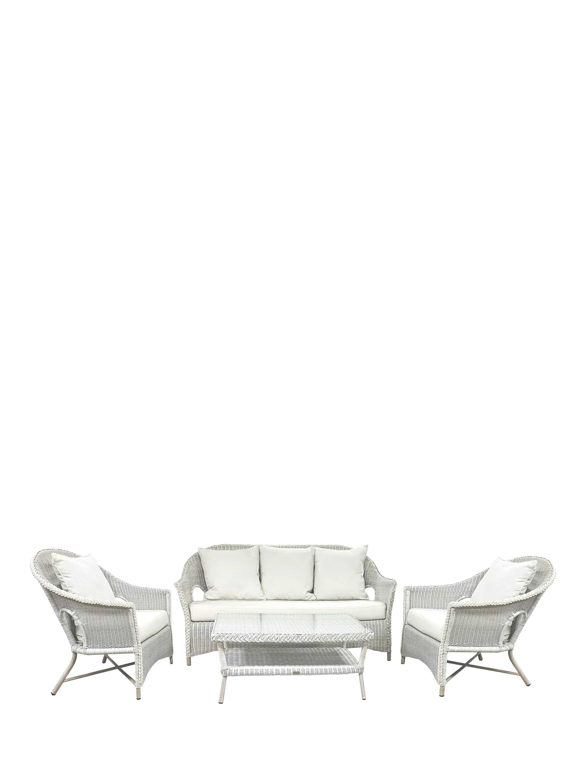 Created using a vintage French lace weave, this Cebu set seats up to five people in the garden or conservatory. The matching coffee table offers style and practicality with a shelf and toughened glass top. Plush cushions made using water and UV-resistant fabrics are filled with foam and fibre inners, giving you a perfect sit in the sun.