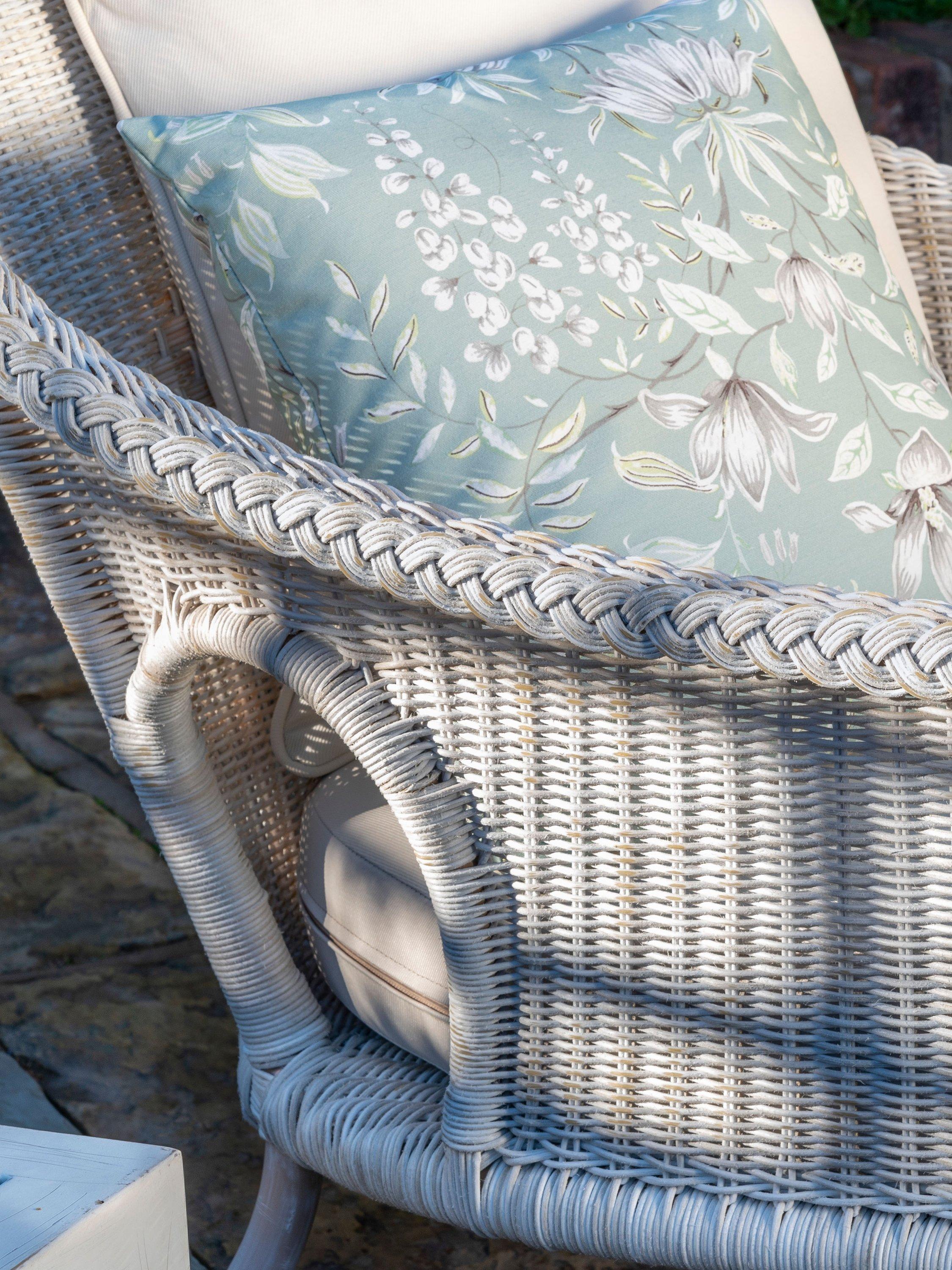 The UV and frost-resistant rattan weave is hand woven onto rust-free powder-coated aluminium frames, making the set weather-resistant so it can be left outside all year round. Cushions should be stored away when not in use.