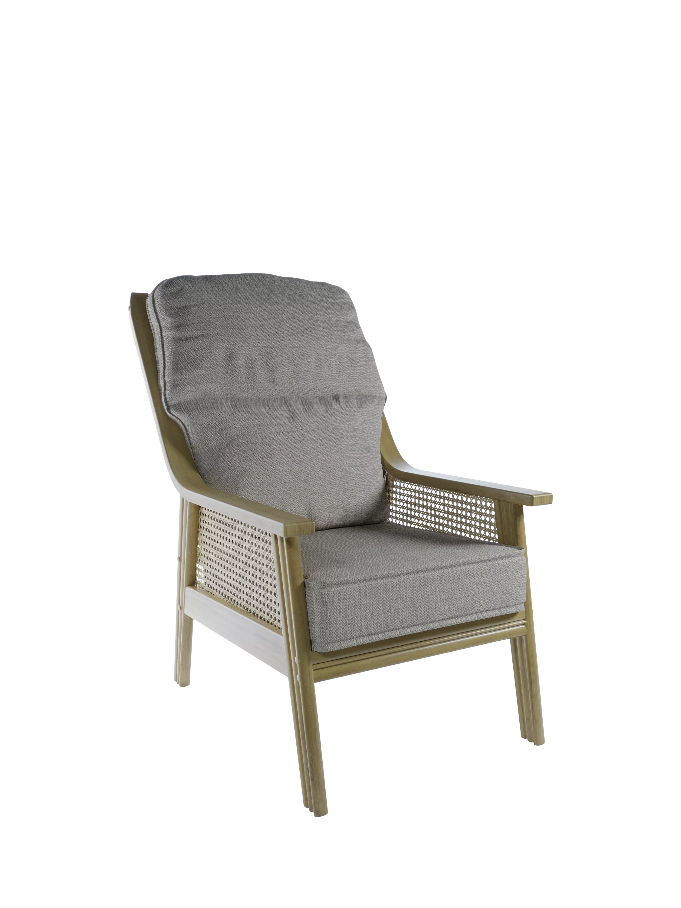 The Dingley lounge chair features a high back and French caning side panels. Ideal for lounging in a conservatory, orangery or open-plan environment, the chair includes a sumptuous base cushion and one backrest cushion in Daro's Carolina fabric.