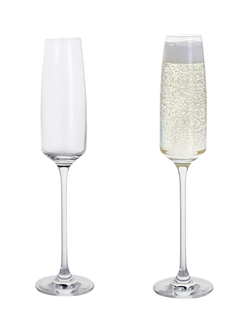 Pair of Dartington Crystal Elevate Champagne Flutes, a sleek, modern design with a sophisticated and luxurious feel. Crafted with champagne, prosecco and sparkling wines in mind, these long-stemmed flutes are shaped to elevate your drinking experience with a narrow opening to retain bubbles.