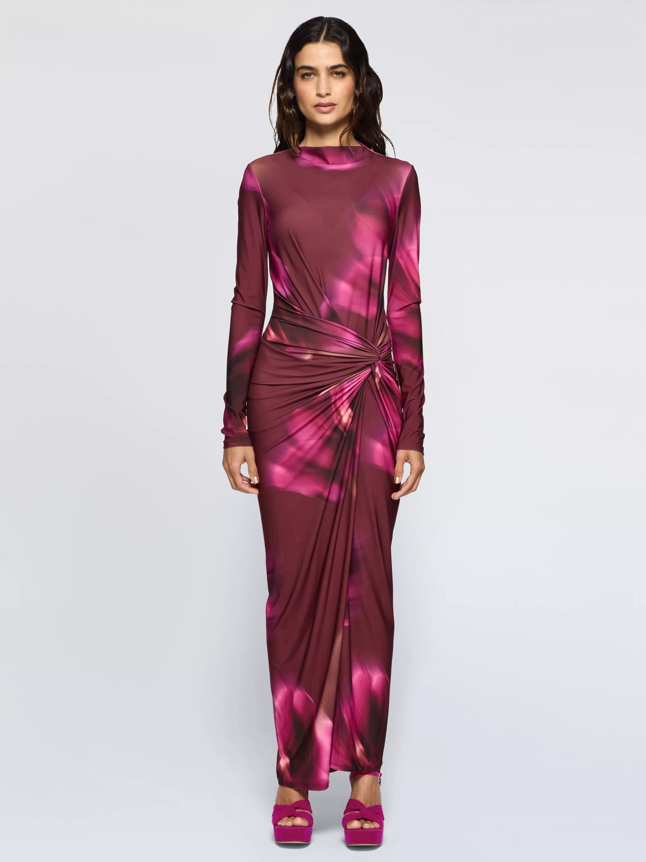 Turn every evening into a moment with this high-neck maxi dress. With a flattering ruched shape and a bold abstract pattern, it's made from a soft stretchy fabric for standout comfort.