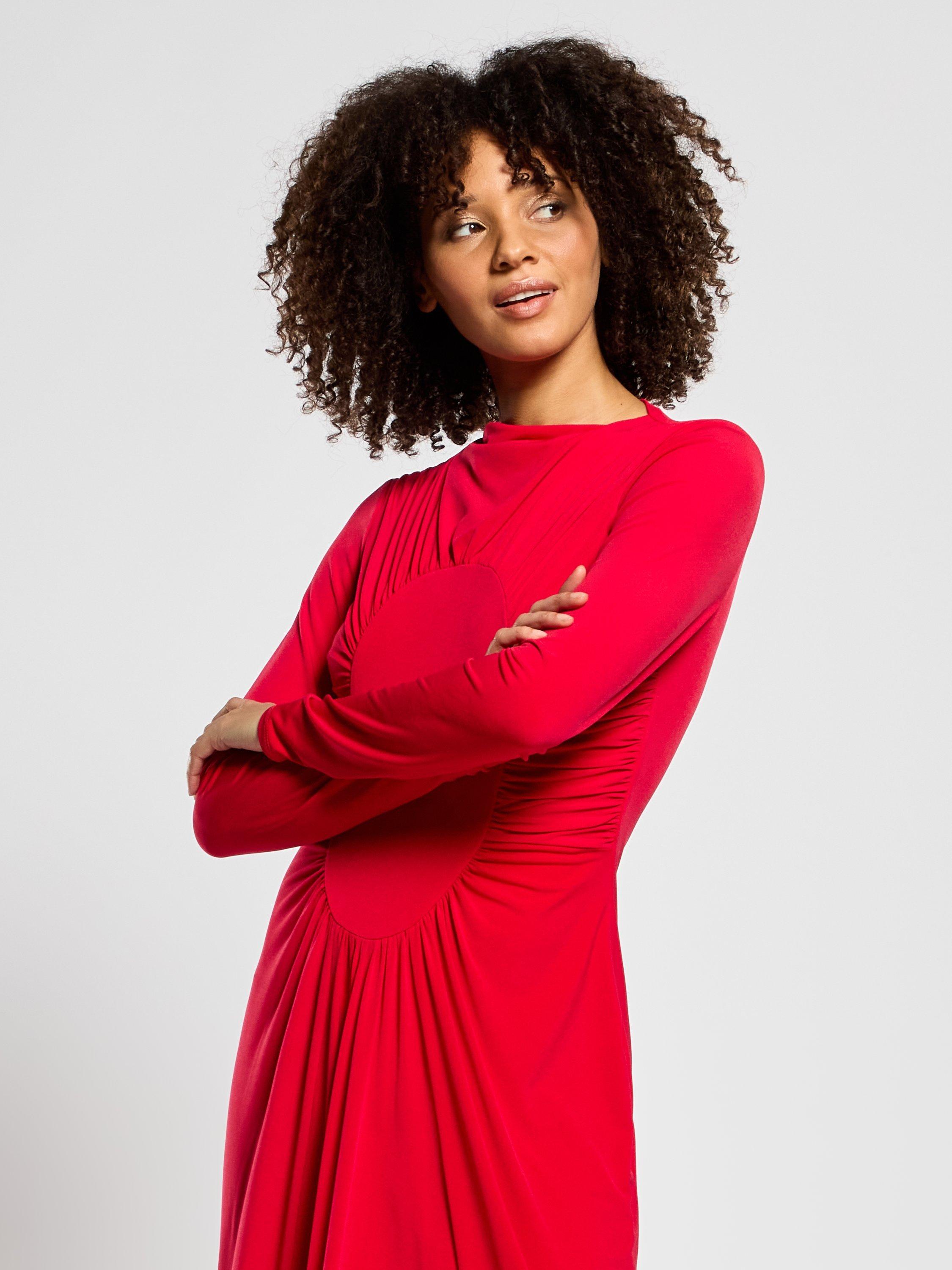 An evening maxi by DASKA. The bodycon fit and ruched details flatter every move, while the slash neck brings modern flair.
